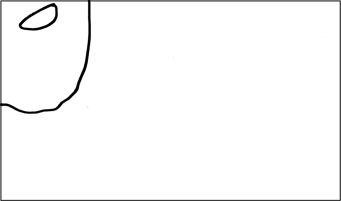 지도 그리는 방법은 성경 탐구의 노하우 중 하나이다. 일단 지도를 그리기 위해서는 박스를 잘 그려야 한다. 이 지도는 고대 근동의 지도이다. 창세기나 출애굽기의 지명까지 다 나오는 지도이다. 우선 직사각형의 박스를 그리고 왼쪽 윗면에 큼직한 빵 덩어리를 하나 그린다. 빵 고물도 슬쩍 하나 그려 놓는다.