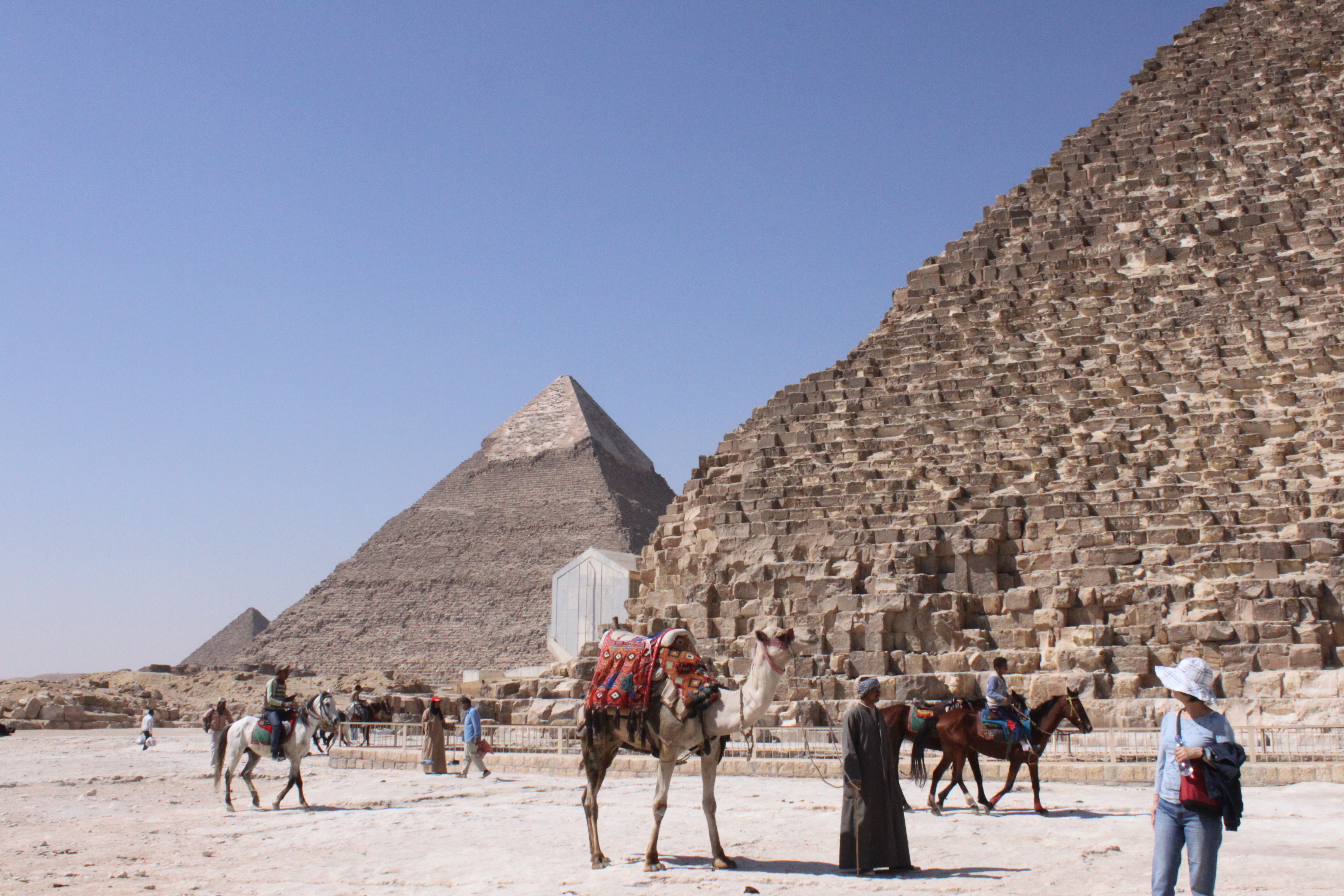 피라미드는 우리가 잘 알듯이 무덤이다. 피라미드는 성지순례와 직접적인 연관은 없지만 카이로까지 왔으니 근교에 있는 기자를 방문한 것이다. 기독교가 유일신을 믿는 반면 고대 이집트인들은 많은 신들을 믿었다. 그들은 우주 만물 하나하나에 모두 신이 있다고 믿었는데 그 중 태양신을 최고 신으로 섬겼다. 또한 기독교가 부활과 생명의 종교인데 반해 고대 이집트인들이 믿은 종교는 가희 죽음의 종교라고 할 수 있다. 죽음 후에도 삶(?)이 계속된다는 믿음에 시신의 보존이 중요했고 또 무덤에는 살아서 누리던 모든 것(옷, 음식, 가구, 보물 등등)들을 함께 넣었다. 그러다 보니 미라기술이 발달되었고 무덤의 크기가 커질 수 밖에 없었다. 그래서 이집트에서는 왕위에 오르면 바로 무덤건축을 시작하였다 한다. 무덤의 크기와 권력의 크기가 비례하는 것은 다른 고대 문명에서도 흔히 발견되었지만, 이집트의 경우는 그 규모가 세계 어디에서도 볼 수 없이 방대하며 견고하게 건축되어 기자에 있는 쿠푸(Khufu) 왕의 무덤(피라미드)은 ‘고대세계 7대 불가사의(Seven Wonders of the Ancient World)’ 중 하나로 이제는 유일하게 남아있는 것이다. 기자에는 이 외에도 카프레(Khafre, 쿠푸 왕의 아들) 왕과 멘카우레(Menkaure, 카프레 왕의 아들) 왕의 무덤과 여왕들의 무덤이 있다. 부대시설로 장례(시신에 향을 넣고 미라로 만드는)가 치러졌던 계곡신전(Valley Temple)과 시신(미라)을 옮기는 둑길, 죽은자에게 음식을 바쳤던 장례신전(Mortuary Temple), 이 모든 것을 지키는 태양신을 상징하는 스핑크스가 있다.