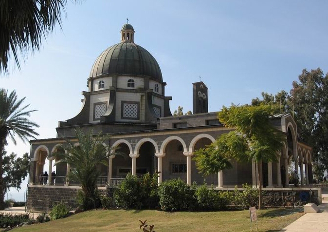 예수님이 산상수훈을 어디서 하셨는지 성경에 정확히 기록되어 있지는 않다. 그러나 예수님이 가버나움에 사시며(마 4:13), 갈릴리 호숫가에서 제자를 부르셨고(마 4:18-22), 산상수훈 후에 가버나움으로 가셨다는 기록(마 8:5, 눅 7:1)에 근거하여, 갈릴리 호수 북쪽에 있는 가버나움의 서쪽에 있는 조그마한 동산(Mt. Eremos)이었을 것이라고 추정하여 그 곳에 기념 교회를 지었다. 동산은 완만한 경사를 이루어 평지로 이어지며 갈릴리 호수가 내려다 보이는 그런 곳에 교회를 세웠는데 지형을 보면 산으로 생각할 수도 있고 평지라고 볼 수도 있다. 교회의 이름은 Church of Beatitudes로 8복을 상징하여 8각형으로 지었는데 갈릴리 지역에서 가장 아름다운 교회라 한다.