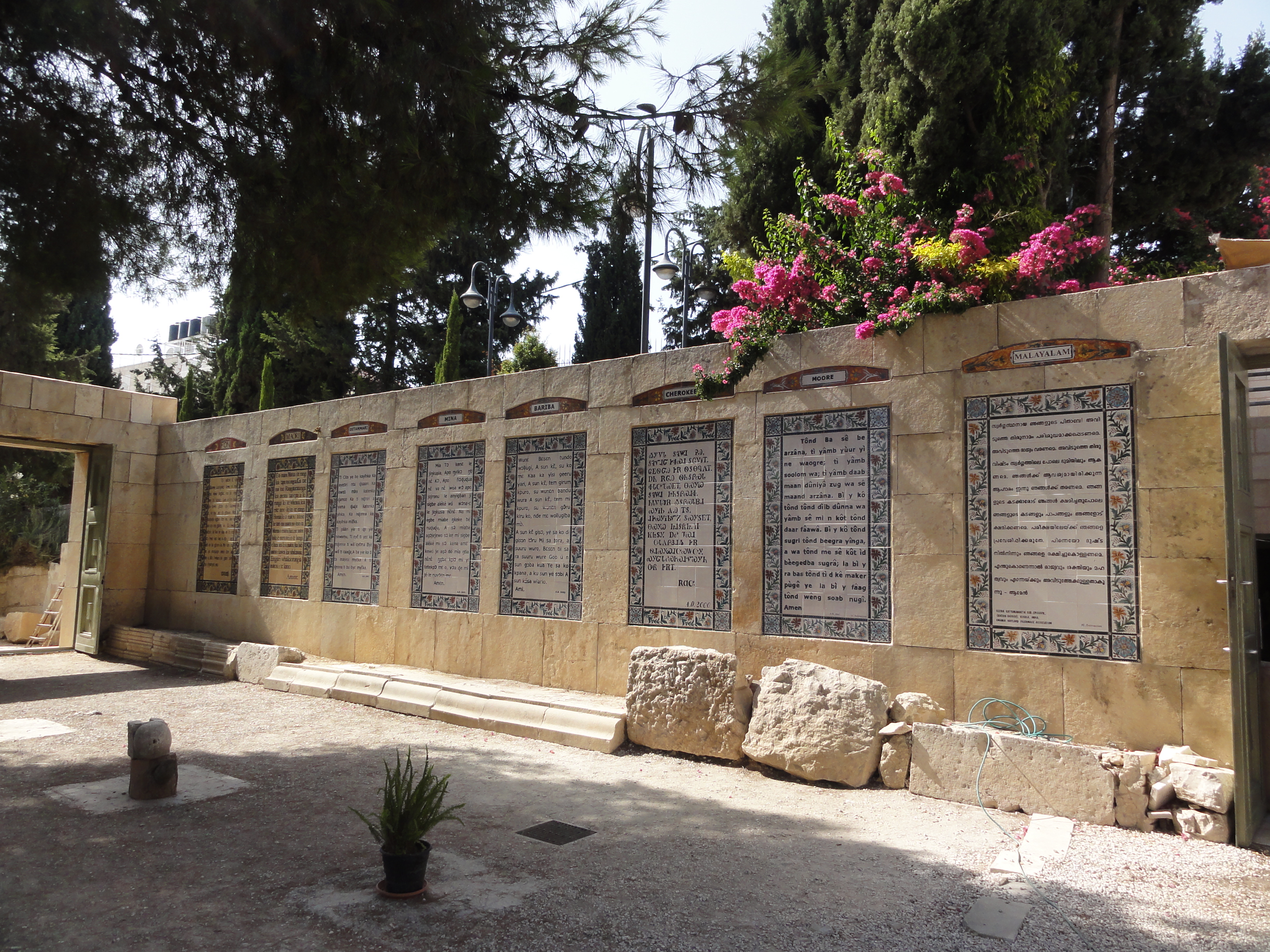 주기도문교회 안 뜰에 있는 세계 100여개 나라에서 각 나라의 언어로 보내온 주기도문 – 사진 출처 Wikipedia