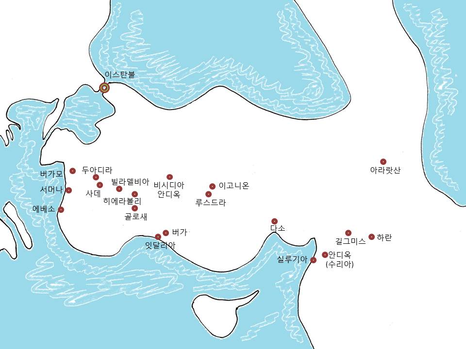 터키에는 노아의 방주가 머물렀던 아라랏 산(창 8:4)이 있고 아브라함이 살았던 하란(창 11:31)이 있으며 애굽의 느고 왕과 유다의 요시야 왕이 전투를 벌였던 갈그미스(대하 35:20)가 있다. 터키에는 사도 바울의 고향인 다소(행 9:11)가 있고 1차 선교여행의 출발지인 항구 실루기아(행 13:4)가 있다. 또한 선교여행 때 전도한 성읍들인 버가(행 13:13), 비시디아 안디옥(행 13:14), 이고니온(행 14:1), 더베(행 14:6), 루스드라(행 14:6), 앗달리아(행 14:25), 드로아(행 16:8), 앗소(행 20:13), 바다라(행 21:1) 및 무라(행 27:5)가 있다. 또한 계시록에 나오는 7교회(성경공부시간에 쉽게 외우도록 배웠던 에서버두사빌라, 계 1:11 외)인 에베소, 서머나, 버가모, 두아디라, 사데, 빌라델비아, 라오디게아가 있다. 또한 골로새서의 대상인 골로새와 온천으로 유명한 히에라볼리(골 4:13)가 있다. 이외에도 성경에는 터키의 지방이름도 많이 등장하는데 수리아(행 15:23 외 다수), 길리기아(행 15:23 외 다수), 갑바도기아(행 2:9, 벧전 1:1), 밤빌리아(행 2:10 외 다수), 루기아(행 27:5), 무시아(행 16:7-8), 비두니아(행 16:7, 벧전 1:1), 본도(행 2:9, 18:2, 벧전 1:1), 비시디아(행 13:14, 14:24) 등이다. 이렇듯 터키는 구약과 신약에 무수히 등장하는 나라이다.