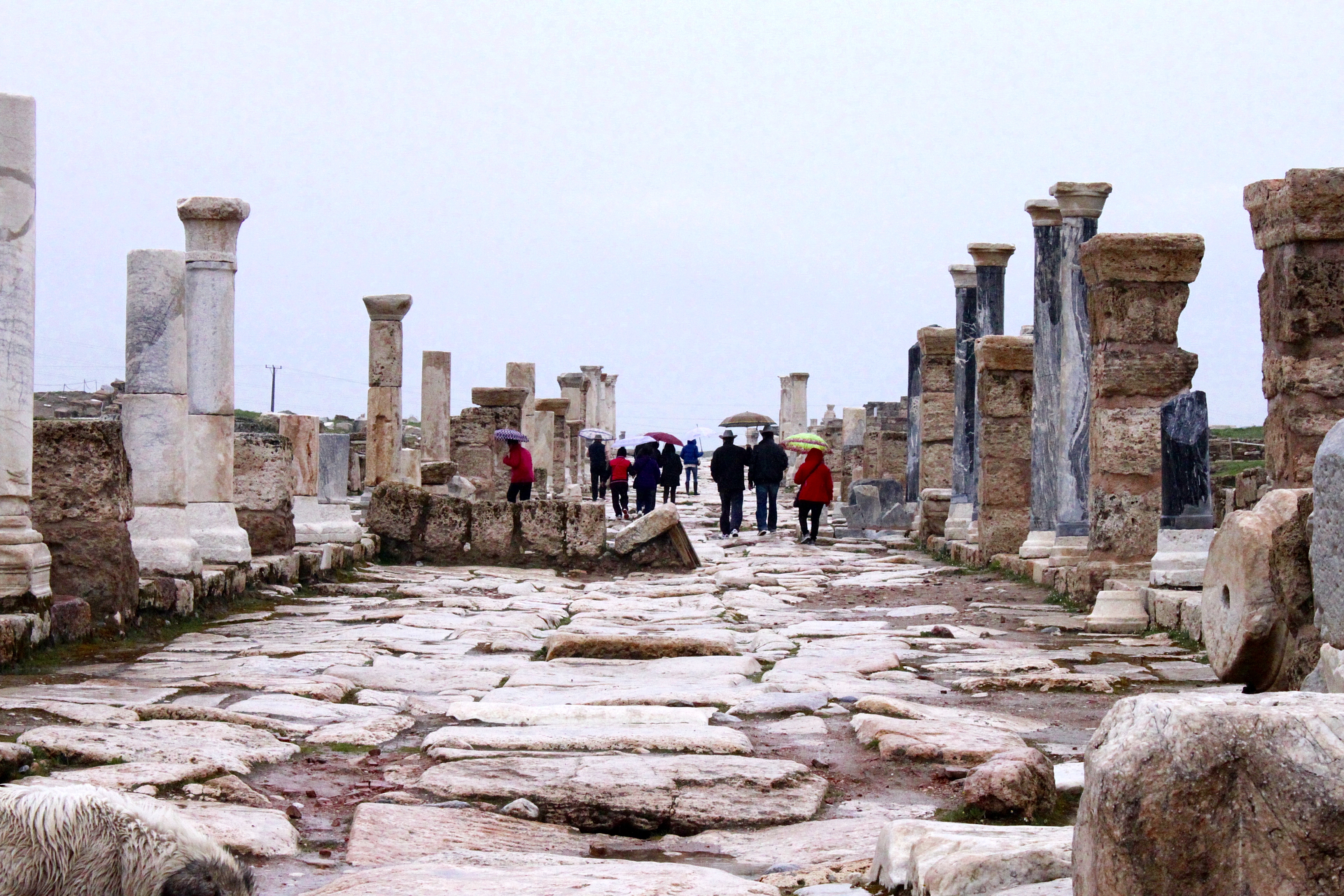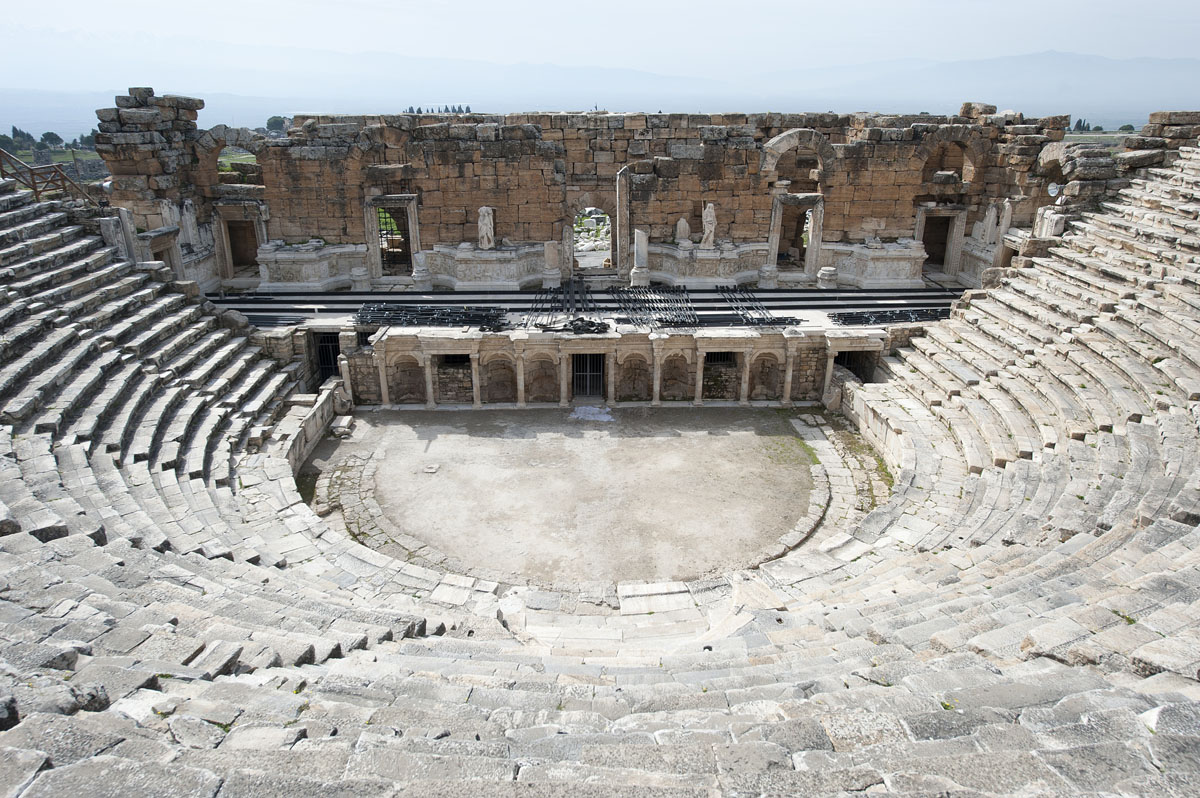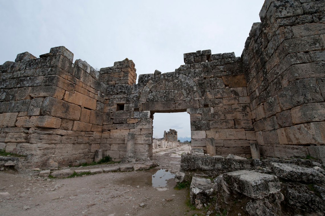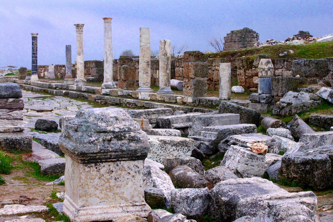 히에라볼리(Hierapolis)는 성경에 딱 한번 나오는 도시이니 역사를 잠깐 훑어본다. 히에라볼리는 주전 2세기경에 버가모 왕국의 유메네스 왕에 의해서 세워졌다. 히에라볼리에는 신전이 많이 있었기에 ‘신전의 도시’라는 뜻이라는 주장이 있지만 그보다는 당시의 풍습에 따라 버가모 왕국의 창시자 텔레스포루스의 아내의 이름인 히에라에 연유했다고 보는 견해에 더 타당성이 있다. 히에라볼리는 주전 2세기 말경에 로마의 영토가 되지만 잦은 지진으로 인한 파괴와 복구가 반복되었다. 지진지대에 있는 온천으로 당시에 휴양도시가 되었고 온천 물을 이용한 염색기술이 발달되어 모직물과 양탄자 산업이 융성했다. 그러나 12세기 초에 있었던 강진으로 도시가 대파된 후에는 사람이 살지 않는 유령도시가 되고 말았다. 1800년 중반에 간헐적인 발굴이 시작되었고 1957년에 비로서 본격적인 발굴이 시작되어 지금에 이르고 있다. 지금은 파묵깔레(Pamukkale)라는 도시에 그 유적들이 위치해 있다. 파묵깔레는 ‘목화 성’이라는 뜻으로 온천수의 석회질이 흰색 바위같이 대규모로 응집되어 멀리서 보면 목화를 쌓아 놓은 것 같다고 해서 붙여진 이름이다. 주요한 유적으로는 사도 빌립 기념교회, 개선문, 아폴로 신전, 야외극장, 대규모 공동묘지 등이 있다. 사도 빌립은 전도가 거의 불가능한 이곳에서 복음을 증거하다 돌에 맞아 순교했다고 전해지고 있으며 이 기념교회는 기독교가 공인된 5세기경에 세워진 것으로 추정되고 있다.