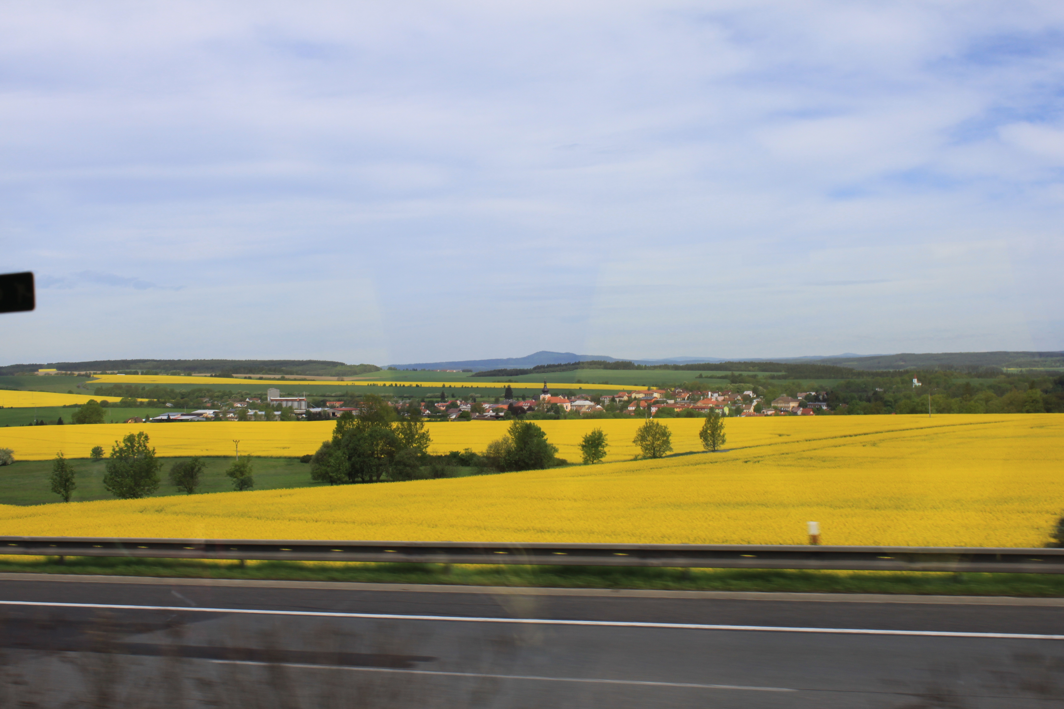 독일에서 체코로 들어가며 느낀 것은 온통 유채화가 만발한 정경이었다. 유럽에서는 유채화로 bio-diesel을 생산하는데 체코가 그 중에 많은 양을 담당하고 있다 한다. 체코를 하늘에서 보면 3가지 색만 보인다는데 빨간 기와지붕, 초록의 삼림, 노란색의 유채화란다. 달리는 차 창을 통해서 한 장: