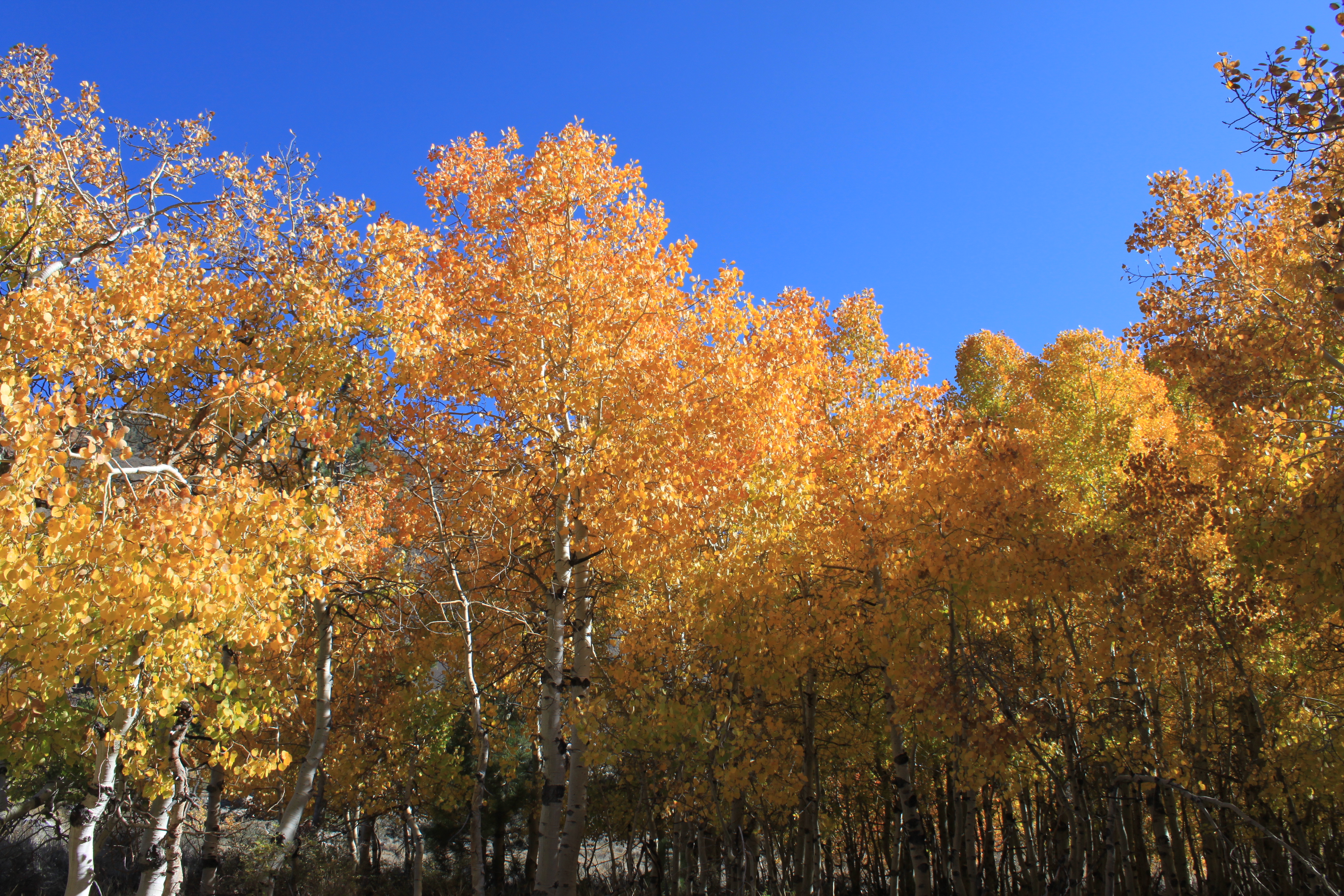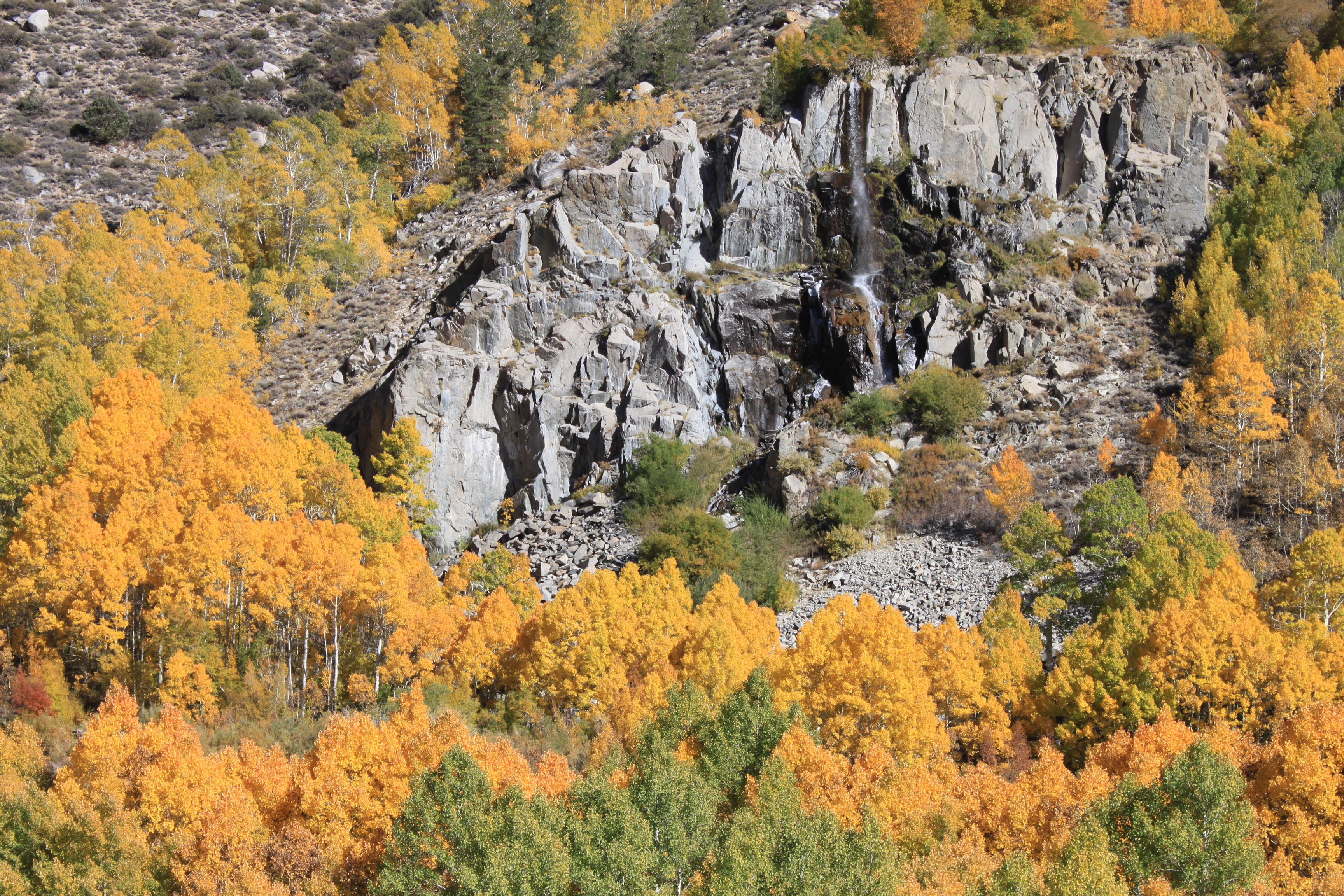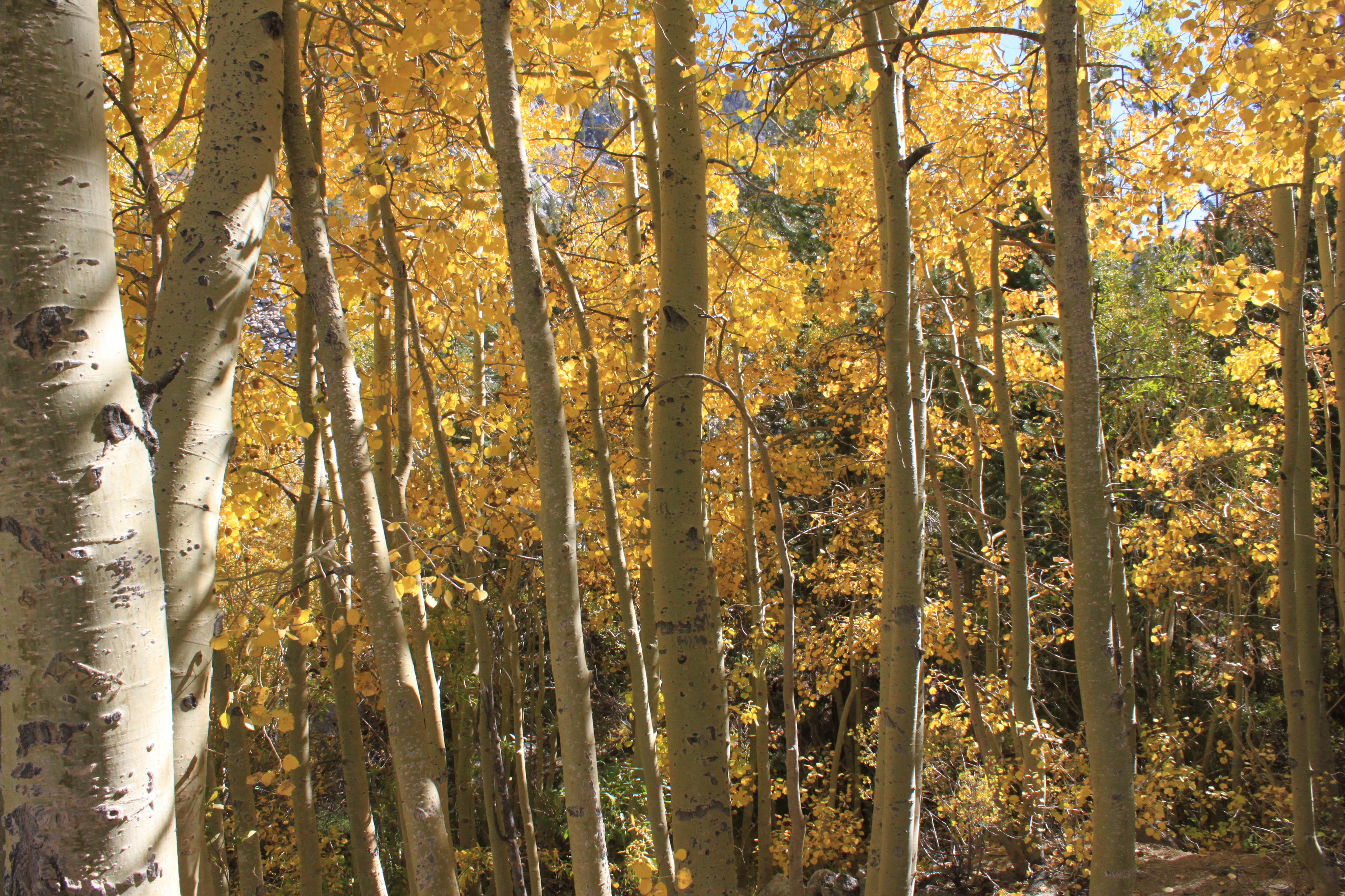 Eastern Sierra는 Aspen 단풍으로도 유명하다. Aspen나무는 한국에도 많이 있는 포플라 나무의 일종으로 잎사귀가 한국의 포플라보다 더 동그스름한 편이다. 계곡에 흐르는 물가에서 자라며 가을에 황금빛으로 단풍이 드는데 그 절정에 때를 잘 맞추면, 설악산의 붉은 단풍과는 비교할 수 없지만, 남 가주에서는 느낄 수 없는 가을을 물씬 맛볼 수 있다.