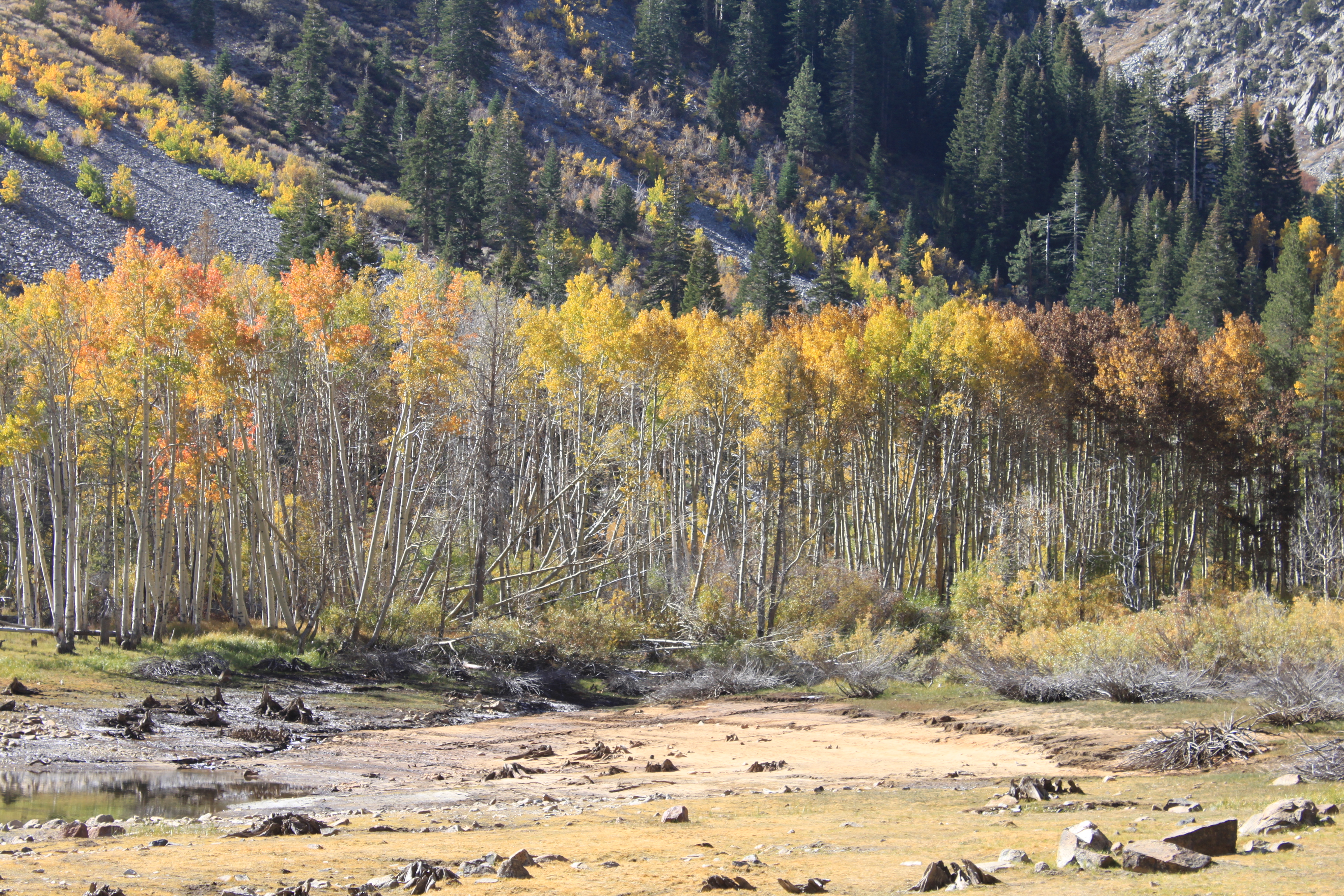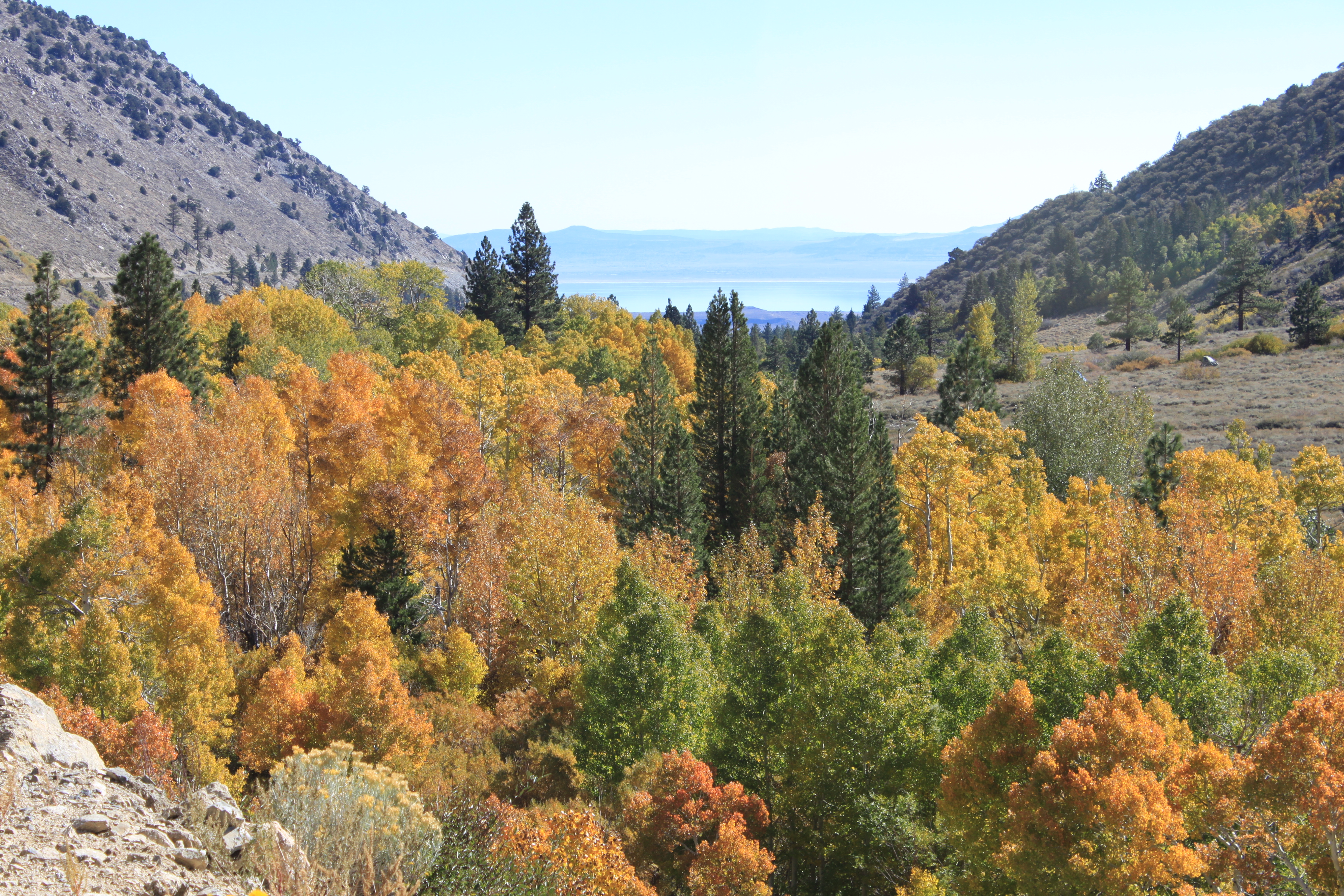 Lundy Lake 일대의 단풍 – Bishop에서 395번으로 약 66 mi을 북상하면 Mono Lake이 나오고 3 mi정도 더 가면 왼쪽으로 Lundy Lake Road가 나온다. 여기는 Bishop 보다는 북쪽이지만 고도가 8,000 ft가 채 안되기 때문에 오히려 단풍이 좀 더 오래 버티는 곳으로 알려져 있다.