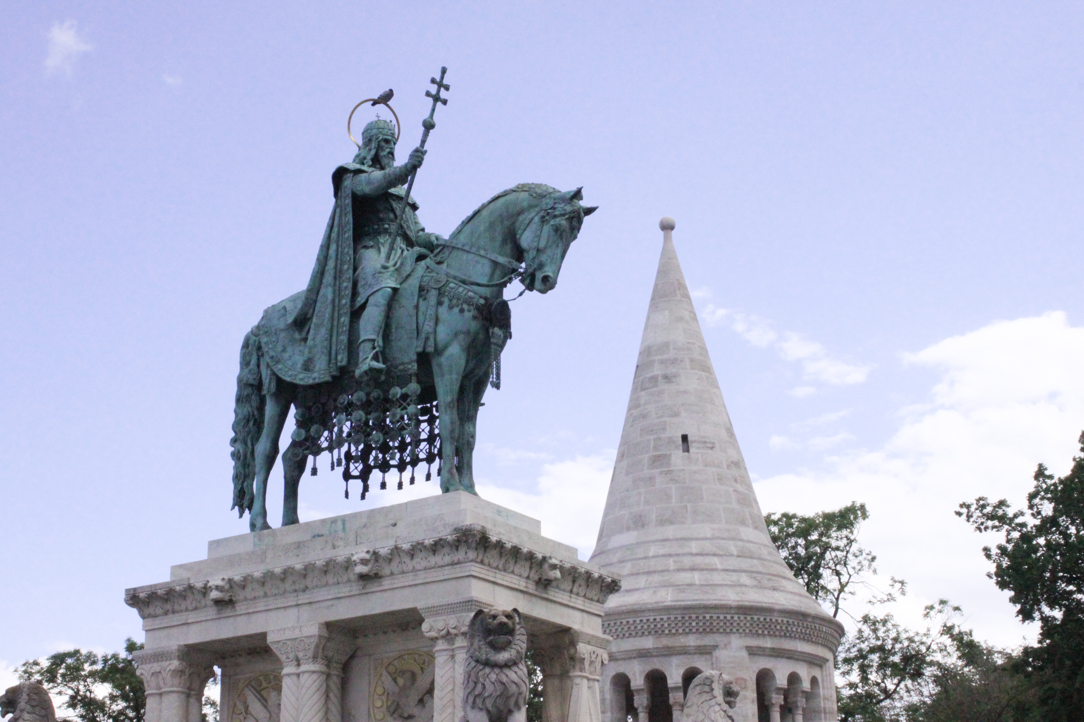 어부의 요새 광장에 있는 스테판 1세의 동상 – Stephen 1세는 많은 군주들을 제압하고 헝가리를 평정한 후 1000년부터 1038년까지 최초의 왕으로 헝가리를 다스렸으며 기독교 국가로 나라를 이끌었다. 스테판이 죽은 후 1083년에 당시 교황 그레고리 7세의 승인으로 성자로 추대되었다. 그를 기념하여 지은 성당이 강 건너 페스트 지역에 있다.