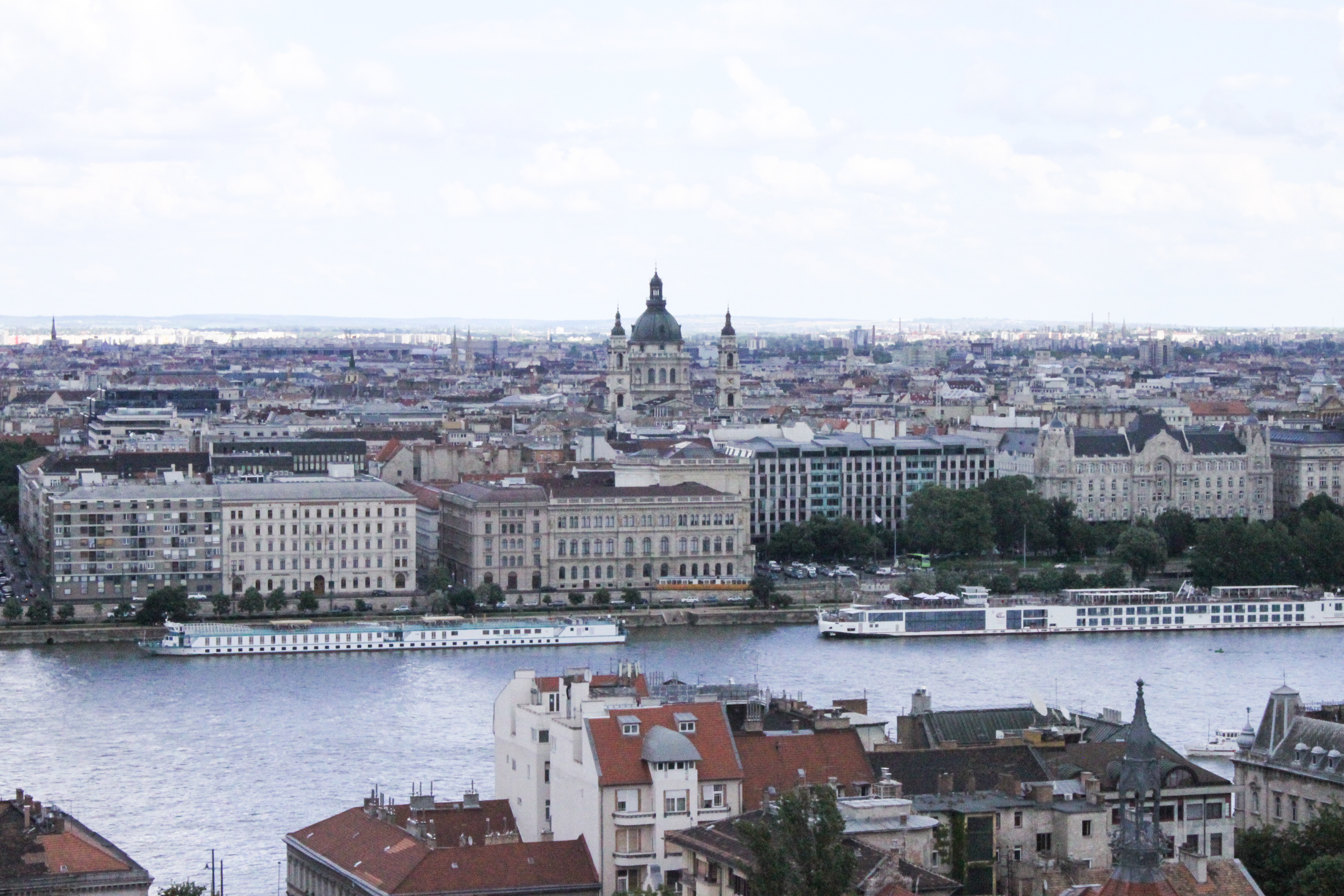어부의 요새에서 내려다 본 다뉴브 강과 부다페스트 시가 – 강 건너 중앙에 보이는 스테판 성당과 강변에 있는 River Cruise 배들