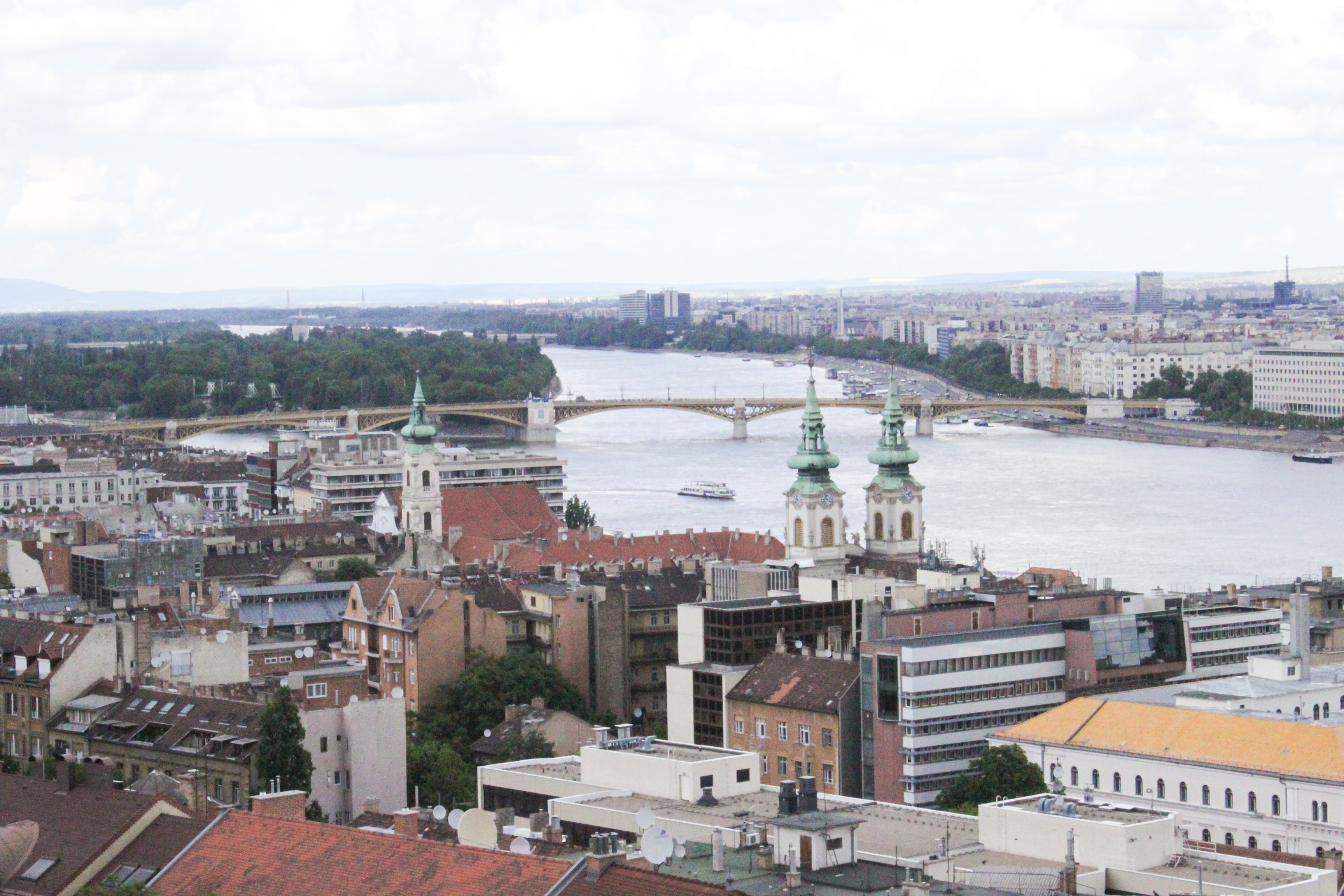 어부의 요새에서 내려다 본 다뉴브 강과 부다페스트 시가 – 마가렛 다리와 왼쪽 위에 보이는 마가렛 섬
