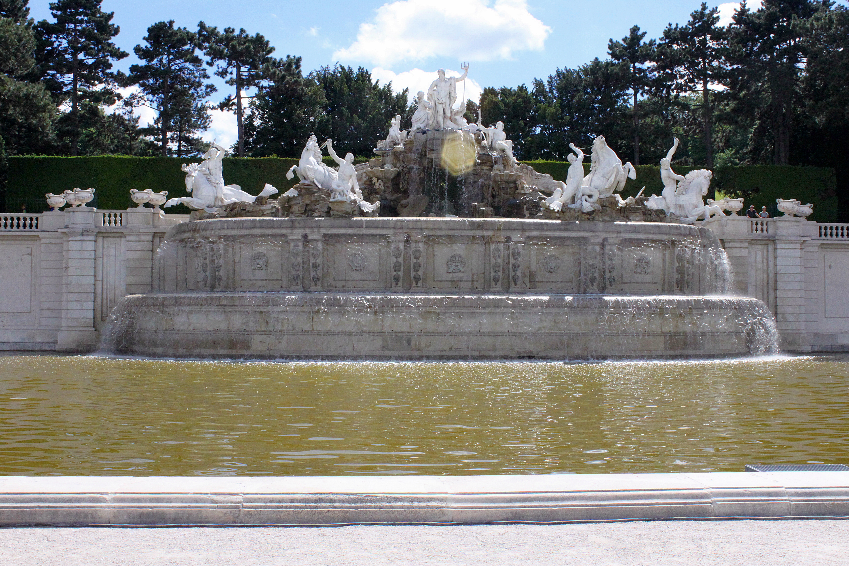 넵튠 분수 – 그리스 신화에 근거한 분수로 궁전건물과 Gloriette 사이에 있는 대표적인 조형물이다. 바다의 신의 상징인 삼지창을 들고 조개 모습의 전차를 타고 바다에서 올라오는 바다의 신 넵튠을 중심으로 왼쪽에는 요정 오른쪽에는 물의 여신 테티스(Thetis)가 있다. 넵튠을 보좌하여 반인반어(半人半魚)인 네 트라이톤(Triton)이 역시 반마반어(半馬半魚)인 바닷말을 타고 넵튠의 전차를 끌고 있다.