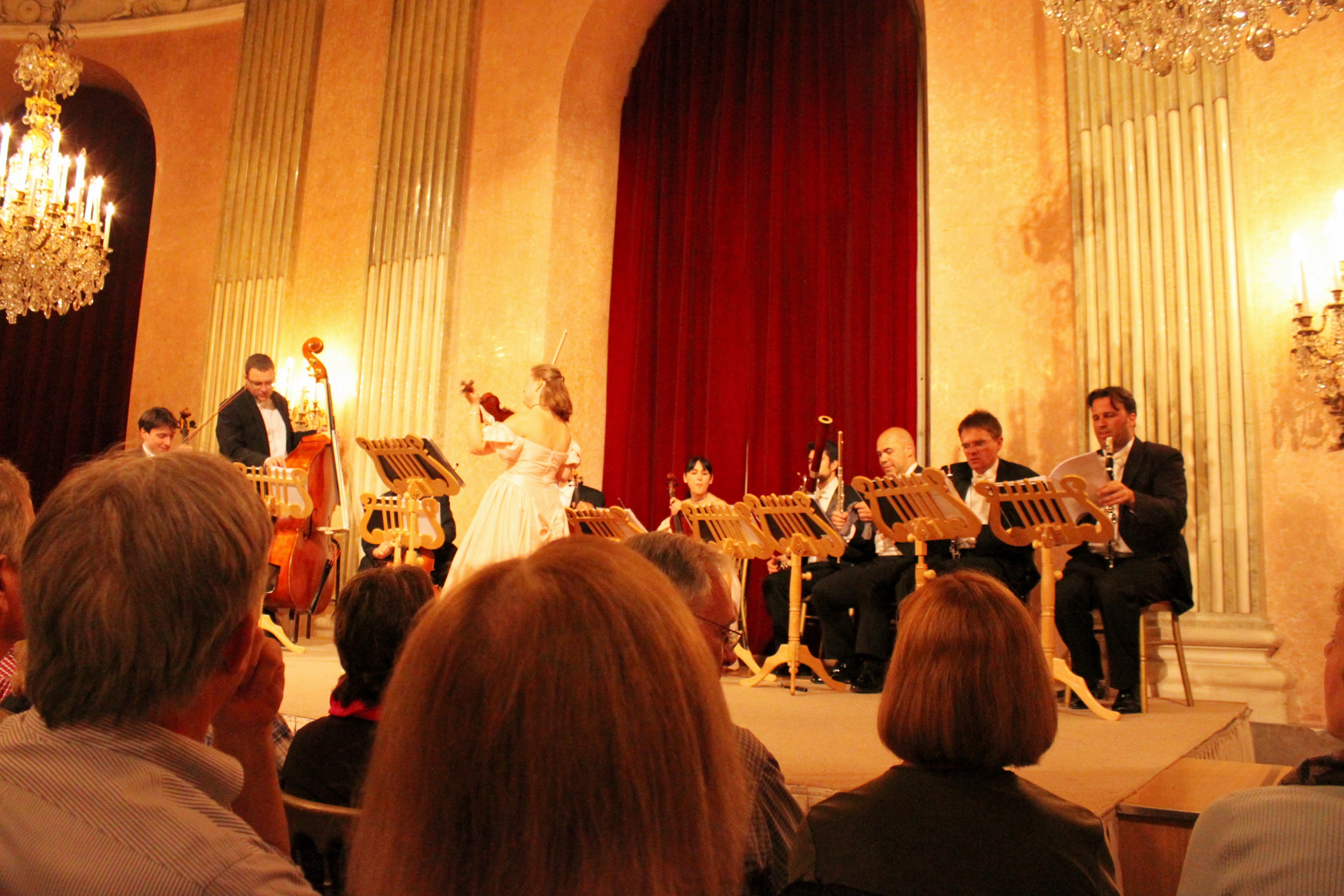 비엔나까지 왔는데 음악회를 빼어 놓을 수가 없다. 다행이 Vienna Residence Orchestra의 연주를 감상할 기회가 있었다. 단원이 약 40명인데 오늘 음악회와 같이 관광객들이 단체로 오는 경우는 12명정도의 실내악으로 꾸미고 성악 2명 발레리나 2명 이렇게 해서 부담 없이 즐길 수 있는 순서를 짰다. Vienna Residence Orchestra는 1706년에 지어진 Palais Auersperg(Auersperg Palace)를 주 연주무대로 사용하고 있다. 이 이름은 1777년에 이 궁을 산 왕자의 이름으로 부친 이름이다. Auersperg의 후손들이 살다가 소유권이 몇 번 바뀌었는데도 이제껏 그 이름으로 불리고 있다. 그런데 이 궁은 ‘장미기사의 궁’(Palais Rosenkavalier)이라는 별명으로도 불리는 데 그 유래가 재미있다. 원래의 궁 주인의 이름이 Hieronymus Capece de Rofrano이고 Richard Strauss의 희가극 Der Rosenkavalier(장미의 기사)의 남자주인공 이름이 Octavian de Rofrano인데다가, 대본을 쓴 Hofmannsthal이 원래의 궁 임자의 아들을 모델로 Octavian이라는 등장인물을 썼다는 사실이 밝혀지고 그런 애칭이 붙었다 한다. 근래에 와서 궁의 북쪽 건물이 동명의 식당으로 되었고 music hall은 계속 음악회 등으로 사용되고 있다.