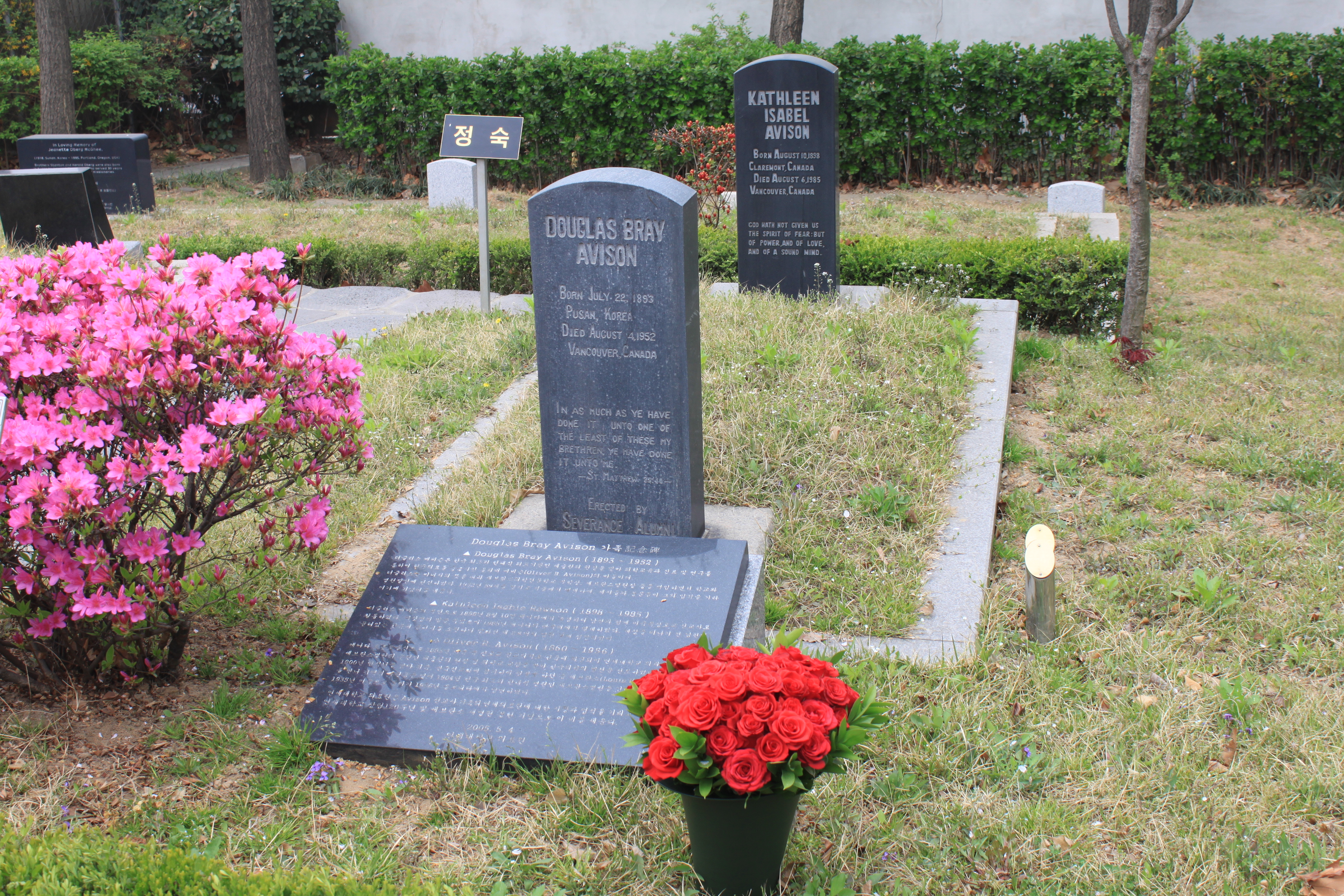 영국에서 태어나 어렸을 때 캐나다로 이민간 에비슨은 어려운 환경 속에서도 약학과 의학을 전공한 후 교수 및 개업의사로 세상적으로 풍족한 삶을 살게 되었다. 그러던 중 1892년 9월 선교모임에서 만난 언더우드로부터 조선선교의 권유를 받은 에비슨은 바로 선교사로 헌신할 것을 다짐하고 그 이듬해인 1893년 8월에 미 북장로회 의료선교사로 조선에 오게 된다. 헤론의 죽음과 알렌의 전보발령으로 제중원의 운영이 부실해진 상황에 조선에 온 에비슨은 제중원의 운영권을 완전히 선교기관으로 이전하였다. 한편 조선인들로 의사와 간호원을 배출하기 위해서 제중원의학교를 개설하였다. 1회 졸업생으로 TV드라마를 통해서 소개된 백정의 아들 박서양을 배출하게 된다. 그 후 에비슨은 미국에서 만난 세브란스씨로부터 병원건축 기금을 지원받아 지금의 서울역 건너편에 현대식 건물을 짓고 제중원을 옮기며 병원이름과 의료원 이름을 세브란스라고 바꾸게 되었다. 그 후 언더우드의 뒤를 이어 조선기독교대학(연희전문학교의 전신) 2대 교장으로도 봉직하였다. 그의 아들 Douglas Avison과 며느리 Kathleen Avison도 의료선교로 봉사하게 된다. 아버지 Oliver Avison의 묘는 미국에 있는데 아들과 며느리는 양화진에 안장되었다. 아래 사진 앞에 있는 대리석 판에는 가족들의 이야기가 기록되어있고 뒤편에 아들과 며느리의 묘가 보인다.