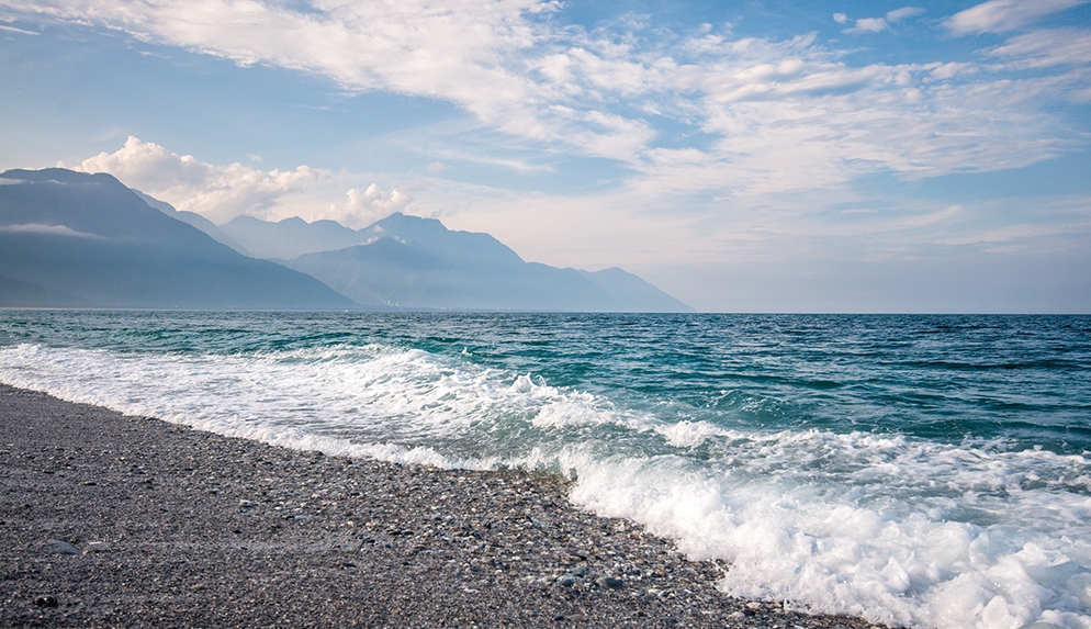 칠성담해변은 물살이 세어 수영을 하는 사람은 많지 않다. 센 파도에 잘 다듬어진 조약돌이 많이 있다.