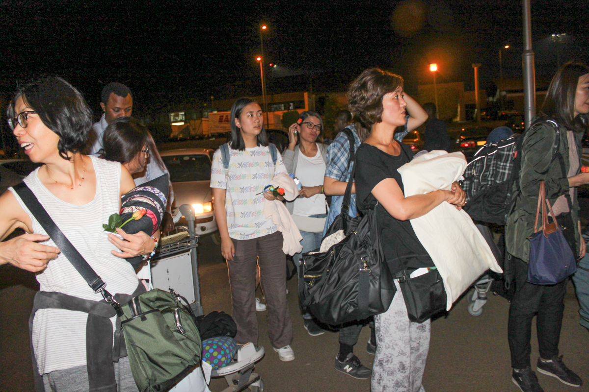 We finally arrived at Kigali airport after about 8.5 hours of the second flight. BFR staff members greeted us and we were treated with roses and lollipops. It sprinkled little bit and they all told us it meant we brought good luck with us. We all had 2 oversize suitcases filled with mission material and a carry-on. That’s total of 36 suitcases to load onto a pickup truck. Kudos to BFR staffs!