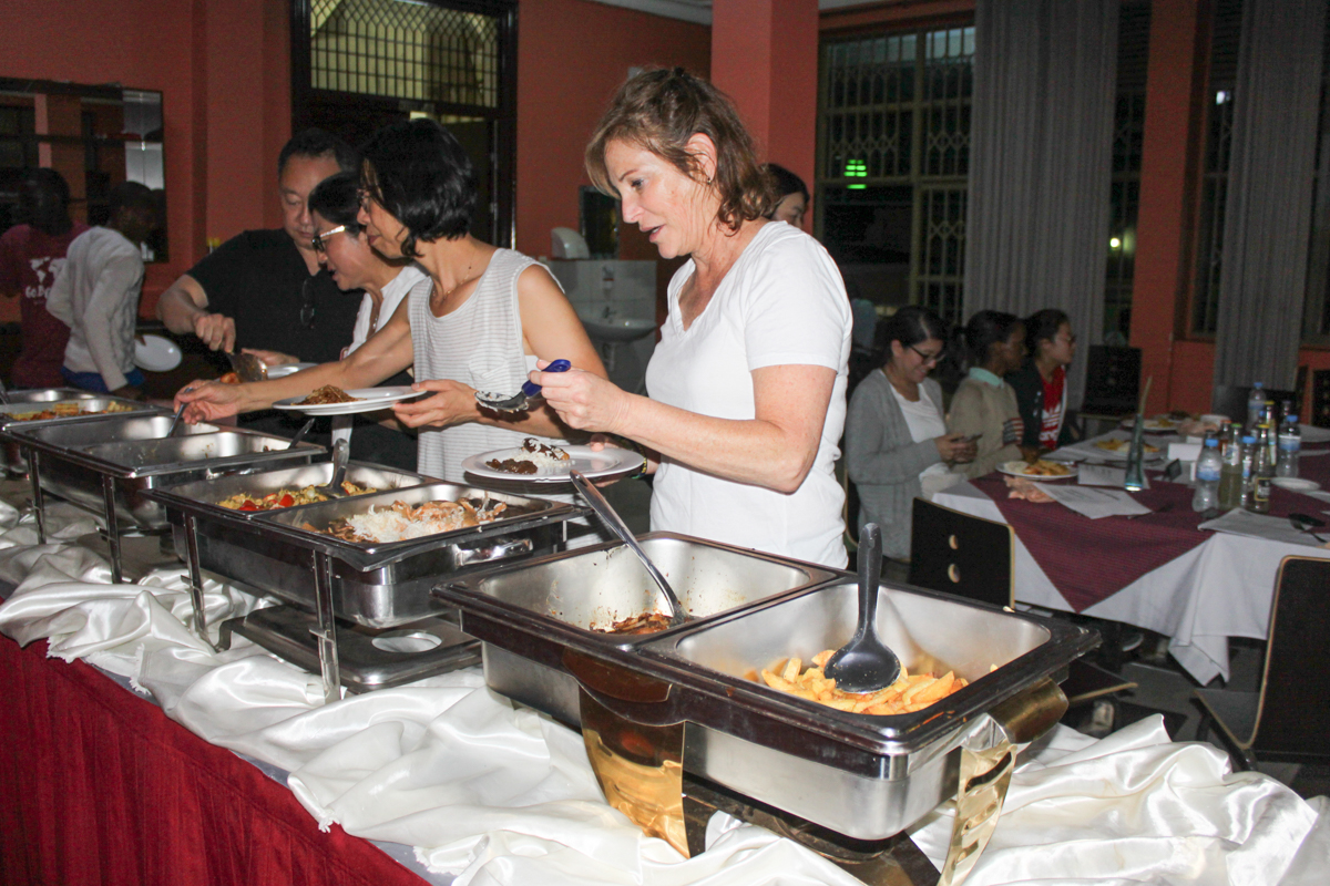 It was almost 10 by the time we got down to the restaurant after checking in and putting suit cases to each room. We were so thankful to God that none of us got sick and arrived to Kigali safely. And the dinner time!