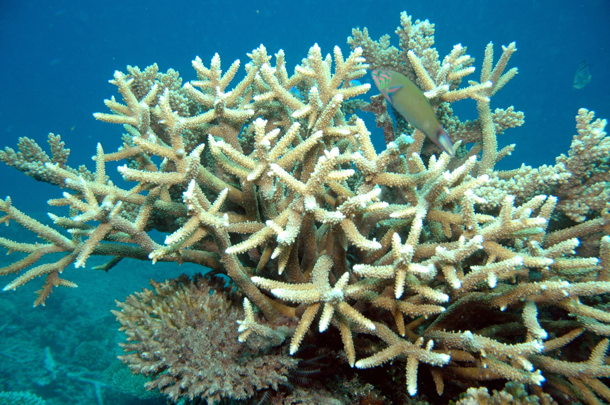 Great Barrier Reef하면 산호 또는 산호초가 떠 오른다. 이 두 단어의 차이가 무엇인가 찾아보니 산호는 산호충이 죽어서 남은 골격이라고 되어 있고 산호초는 산호충의 유해나 분비물이 쌓여 만들어진 석회질의 암초라고 되어있다. 산호나 산호초 둘 다 생명이 없는 물체를 가리키고 산호충이 살아있는 생명체를 뜻한다는 것을 이제야 알았다. 한영사전으로 산호를 찾으면 coral이라고 나오는데 재미있게도 coral은 산호와 산호충을 다 가리키는 단어이다. 그래서 이 글에서는 산호충을 그저 산호라고 부르련다. 산호는 동물, 식물 및 광물의 특성을 다 갖고 있는 생물이다. 몸의 일부분은 움직이지만 광물질로 이루어진 몸통의 근본은 움직이지 못하는 것이다. 산호는 폴립(polyp)의 형태를 갖고있는데 원통형의 몸 한쪽에 입이 있고 입 주변에 촉수가 있다. 촉수에는, 벌침에 비교할 수 있는, 아주 미세한 침이 있어 미생물들을 잡아 먹는다. 깊지않은 바다에 사는 산호들은 단일세포 해조(algae)와 공생하는데 서로 필요한 양분을 주고받는다. 아래 사진에 산호의 폴립 몸통과 촉수, 몸통에 있는 녹갈색의 점들이 단일세포 해조들이다. 사진 출처: Smithsonian National Museum of Natural History