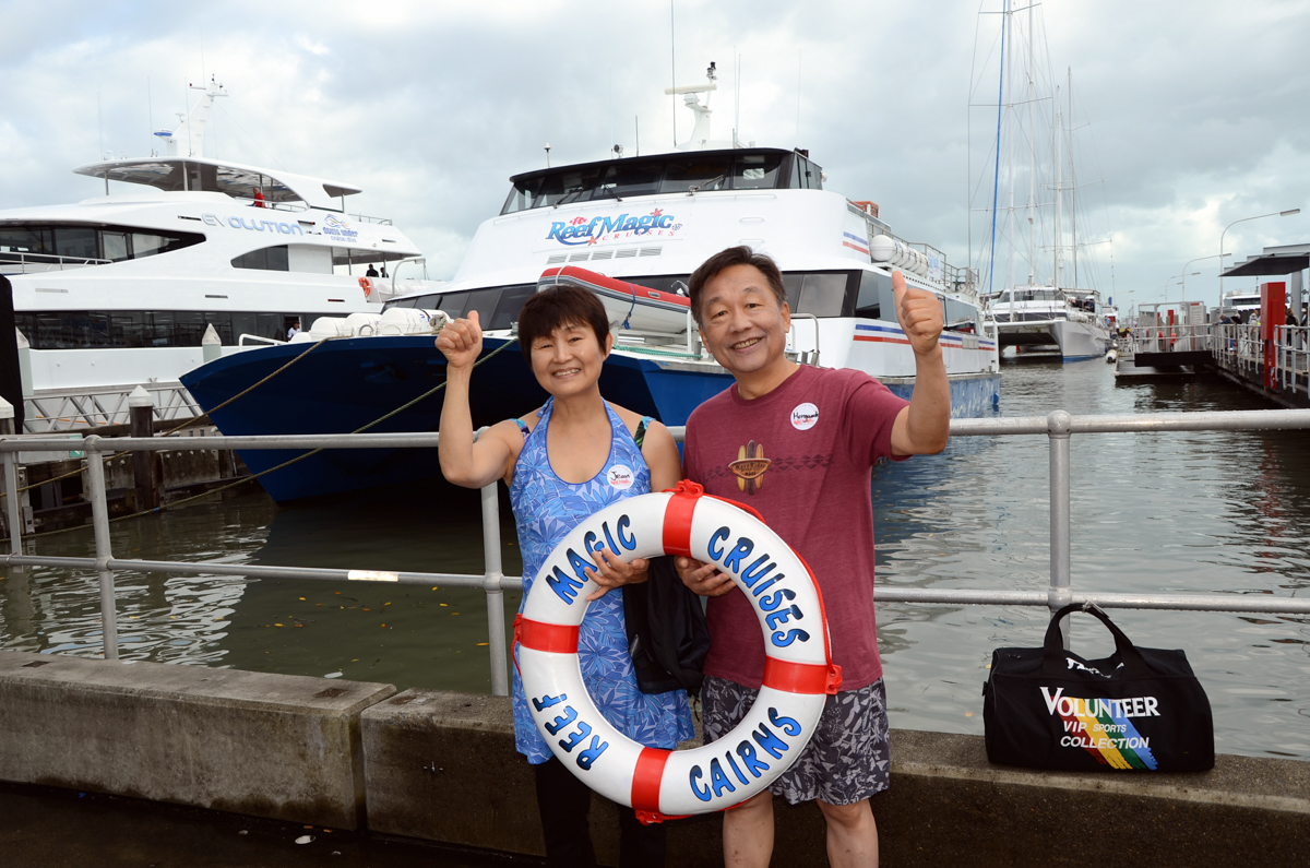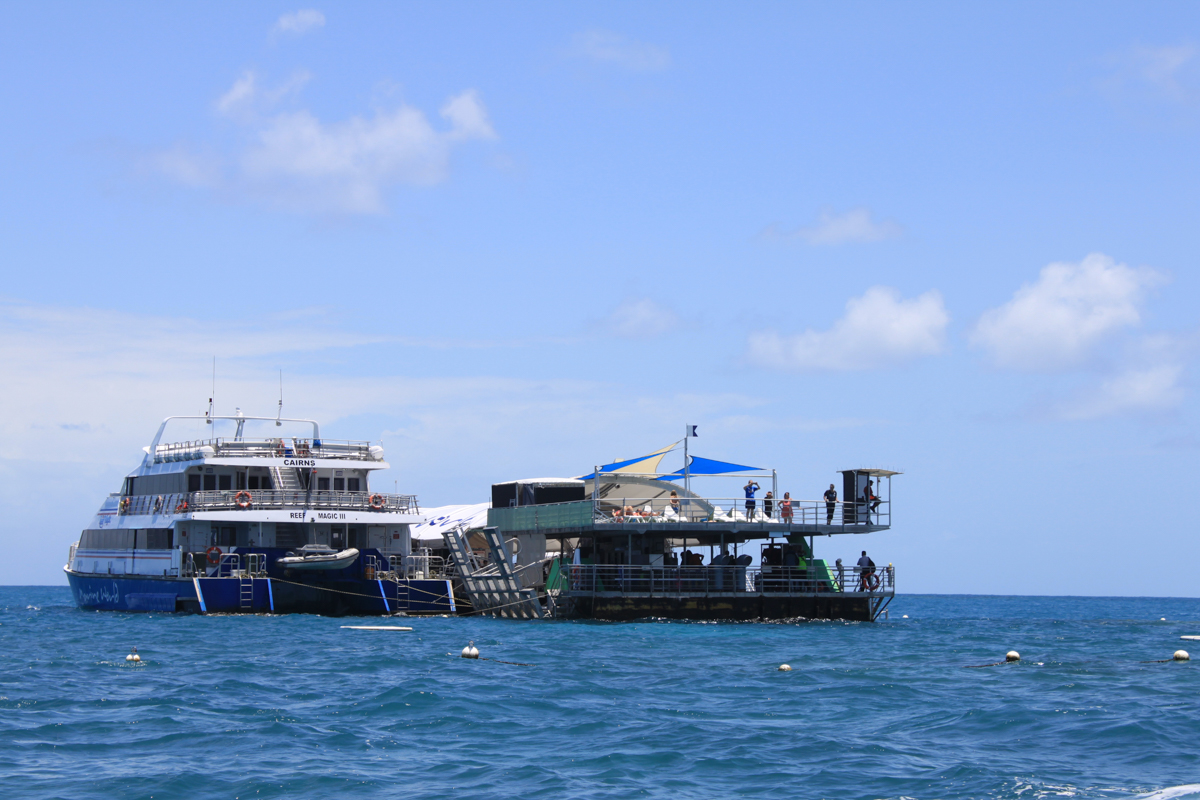 케언스에서 떠나는 Great Barrier Reef 관광은 Spence St. 끝에 있는 항구로부터 시작한다. 쾌속정으로 약 한시간반 정도의 거리에 해상기지를 설치해 놓고 그 곳으로 가서 5시간 정도에 걸쳐 여러가지 프로그램을 즐기게 된다. 요금에 왕복 배편, wet suit을 포함한snorkeling 장비, glass bottom boat와 semi-submersible boat 탑승관광과 점심이 포함되어 있다. 별도 요금을 내면scuba diving, helmet diving 및 helicopter 관광을 할 수 있다. 배에 타니 선실에서 근무하는 승무원 10여명 중 한국사람이 4명이나 있어서 놀랐다. 이야기 해보니 마침 이 회사가 한국인 관광객을 유치하려고 적극적으로 홍보하며 한인들을 고용했다 한다.
