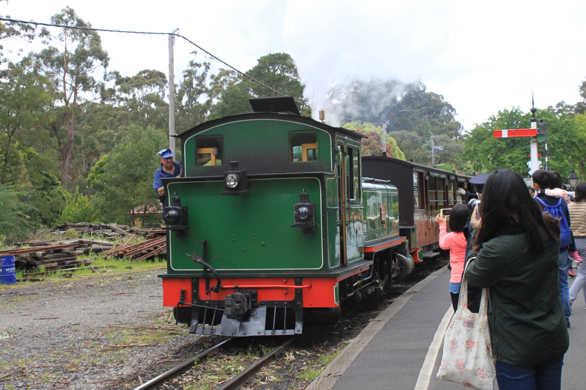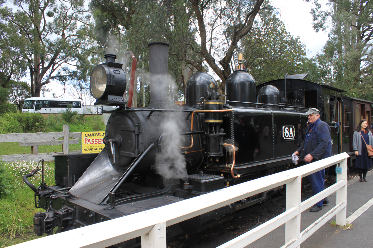 Menzies Creek역으로 들어온 Gembrook 행 NA급 기관차. 이 종류는 1898년부터 1915년 사이에 총 17대가 미국에서 생산되어 호주로 수입되었다. 현재 6대가 남아있는데 1대는 박물관에 있고 5대가 가동 중이다. 이 기관차는 8A.