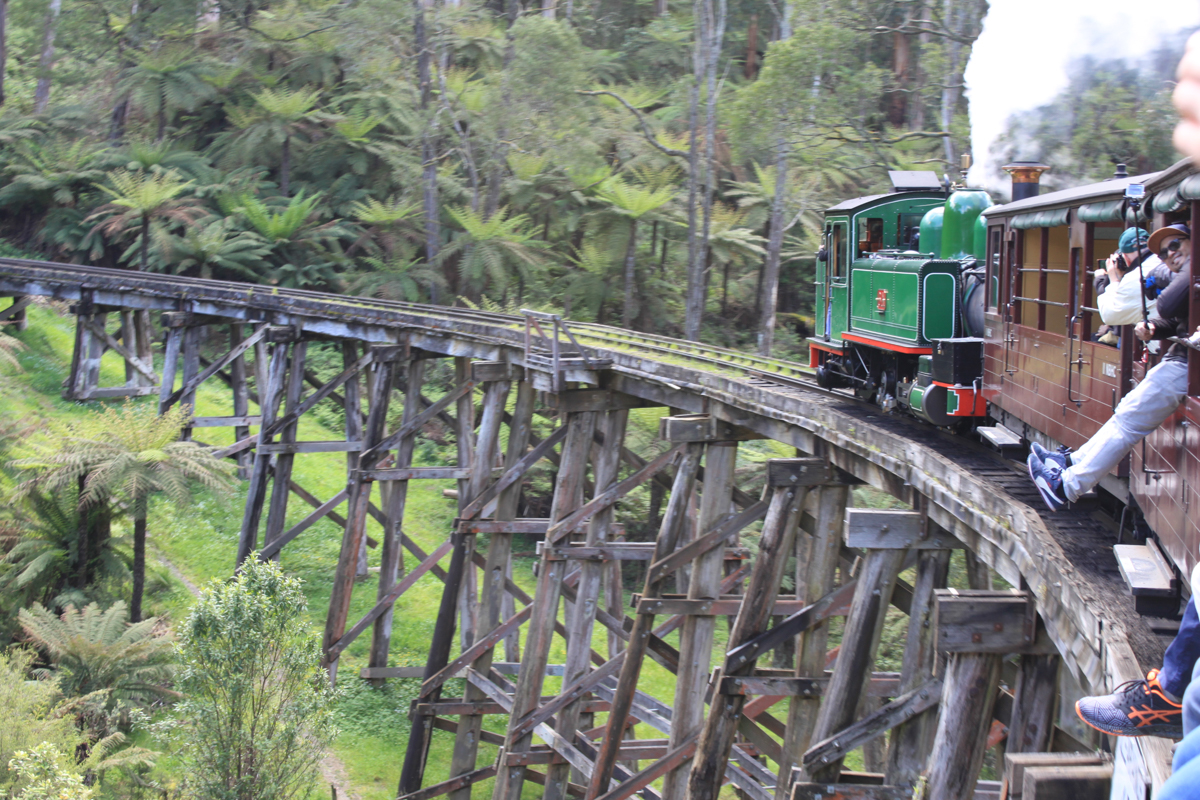 Timber trestle bridge – 나무로 A자나 세발(tripod) 모양으로 만든 틀을 촘촘히 교각으로 사용하여 지은 다리. 그런 교각들을 15 간격으로 배치하여 지어진 이 다리는 길이 300 ft(91.4 m), 가장 높은 곳이 42 ft(12.8 m)이며 빅토리아 주 역사보존물로 등재되어 있다. 일일관광용 객차에는 창문이 없고 대신 쇠창살이 가로 질러 있어 많은 젊은이들이 바깥을 향해 창틀에 걸터앉아 다리를 내 놓고 간다.
