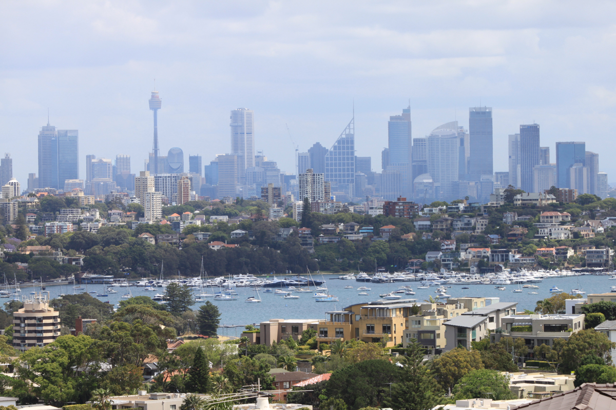 시드니 전경, 오른쪽 끝에 그 유명한 오페라 하우스가 있고 왼쪽으로부터 4분의 1정도 지점에 시드니 티워(Sydney Tower)가 있다. Photo Credit: Marc Dalmulder