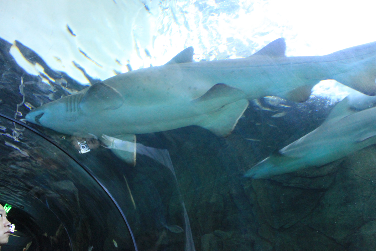 Pyrmont Bridge 바로 옆에 수족관의 터널 형태로 되어 있는 곳 위로 지나가는 상어
