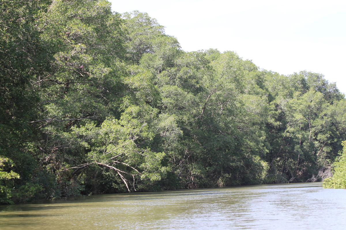 강변, 특히 강 하구에 있는 맹그로브 숲과 여기저기에 있는 바나나 나무