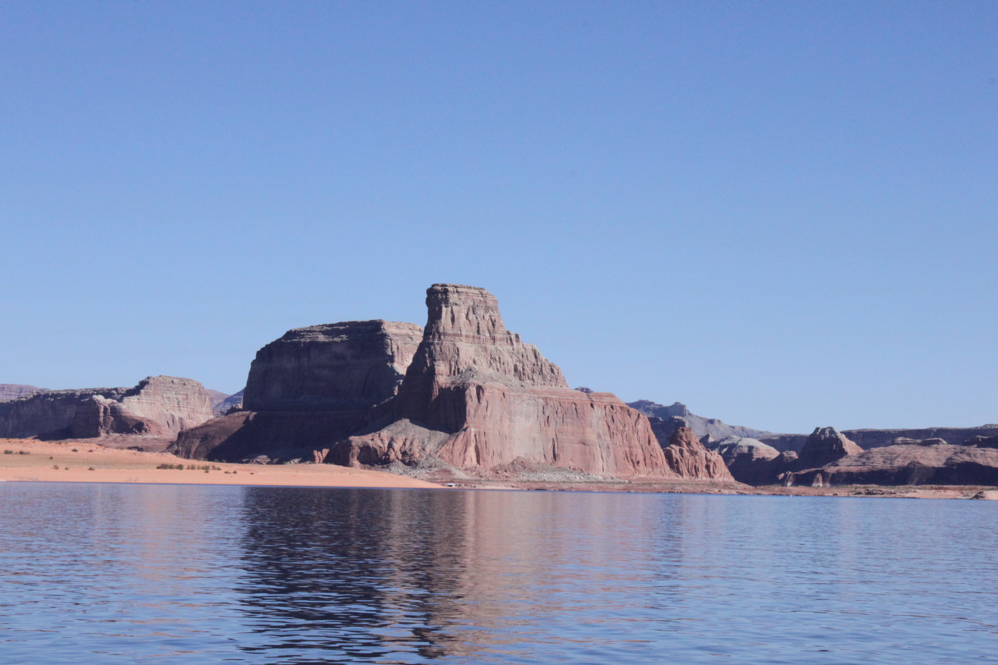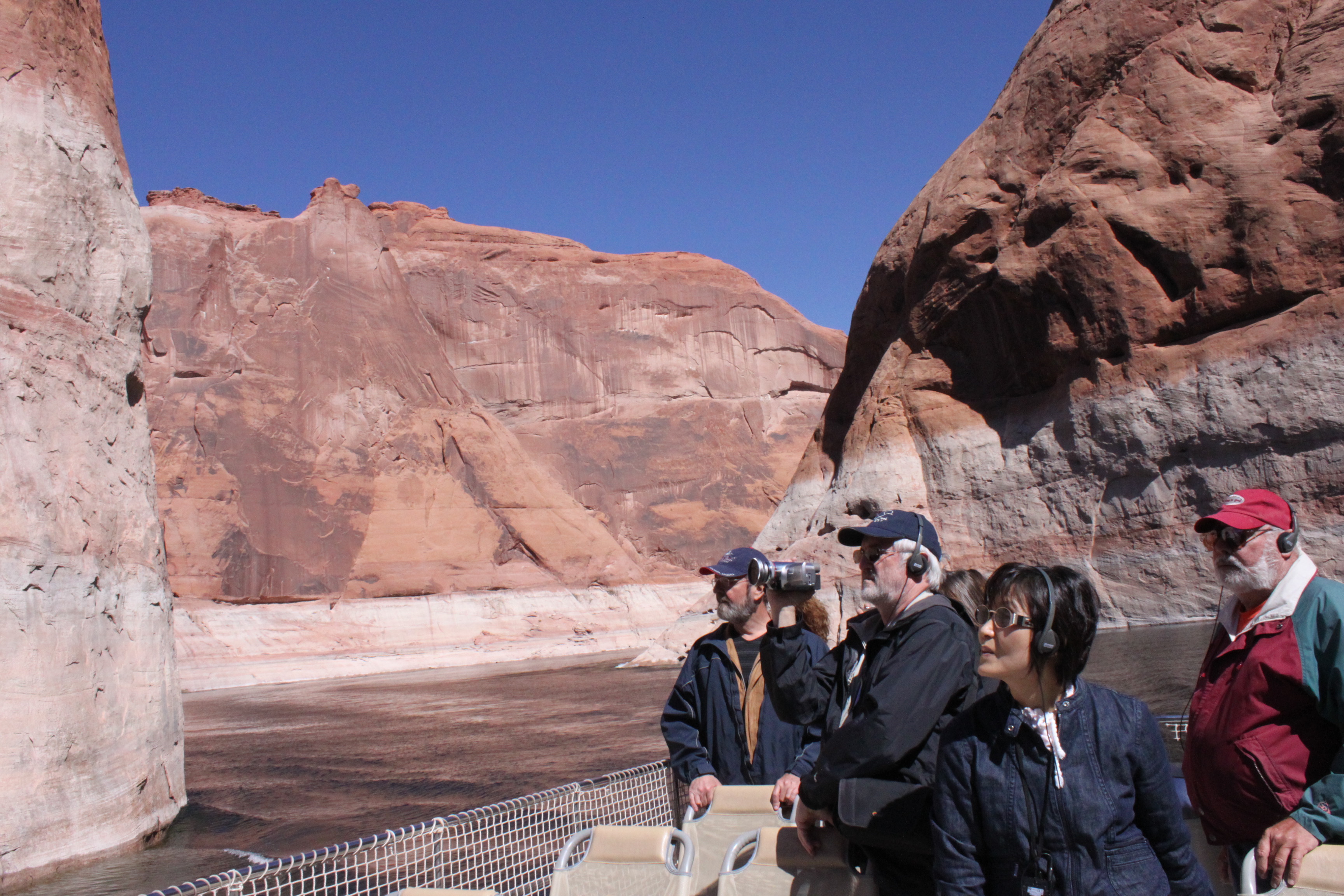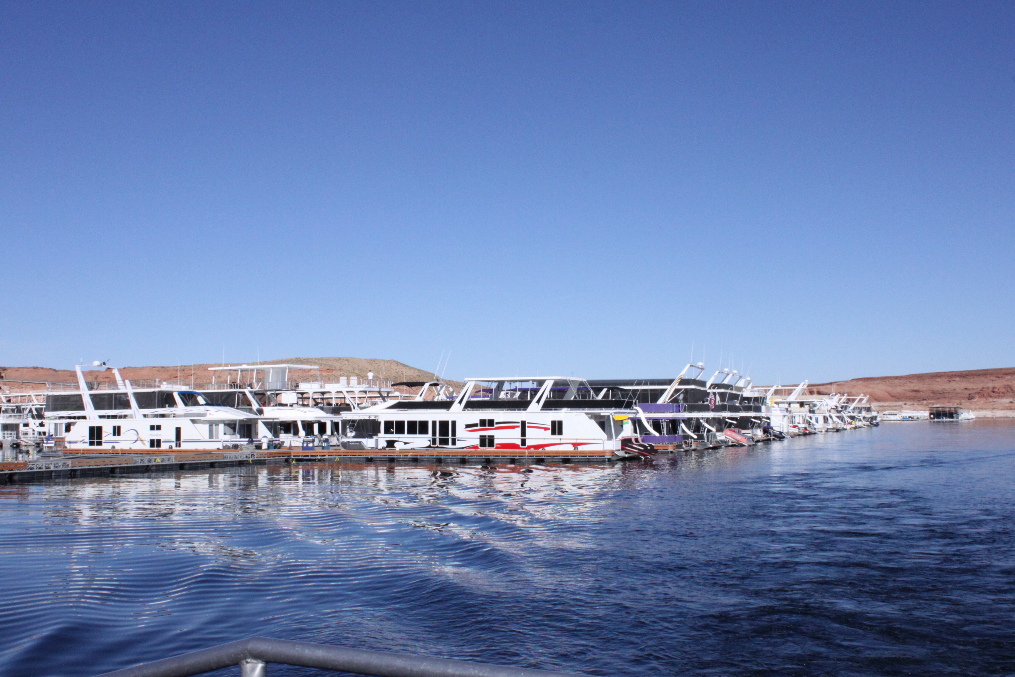 이 댐으로 인해 생긴 호수가 파월(Powell) 호수이다. 수 많은 계곡으로 산세가 특이한 지역에 댐을 쌓았기에 호수가 보통의 둥그스름한 모양이 아니고 울퉁불퉁 삐죽삐죽 한 게 생선뼈를 연상케 하는 정말 기기묘묘하게 생긴 호수이다. 이 일대에 유타 주와 애리조나 주에 걸쳐 약 120만 에이커의 광대한 지역을 Glen Canyon Recreation Area라 한다. 많은 계곡을 끼고 호수가 형성되어 길로 치자면 수없이 많은 골목길이 생기게 되었다. 그래서 이 곳에서는 house boat를 빌려서 여름을 보내는 게 인기가 있다. 육지에서 camper를 타고 다니듯 배를 타고 호수를 다니며 이 계곡 저 계곡에 배를 정박시키고 노는 것이다. 일일관광으로도 배를 타고 보는 것이 많이 있는데, 아무래도 이곳에서 단연 인기가 있는 행선지는 Rainbow Brodge이다. Wahweap Marina에서 출발하는 배편이 있는데 편도 약 2시간 반이 갈린다. 가는 뱃길에 볼 수 있는, 오랜 세월 강물로 깎인 사암(sandstone)의, 자연 조각품들과 절벽들이 탄성을 자아내게 한다.