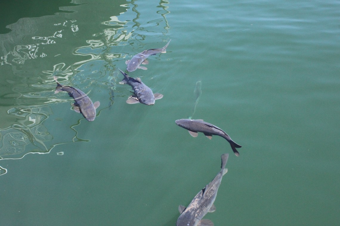 선착장에 사람 기척을 감지하고 혹시 먹이를 줄까 하고 몰려드는 물고기들