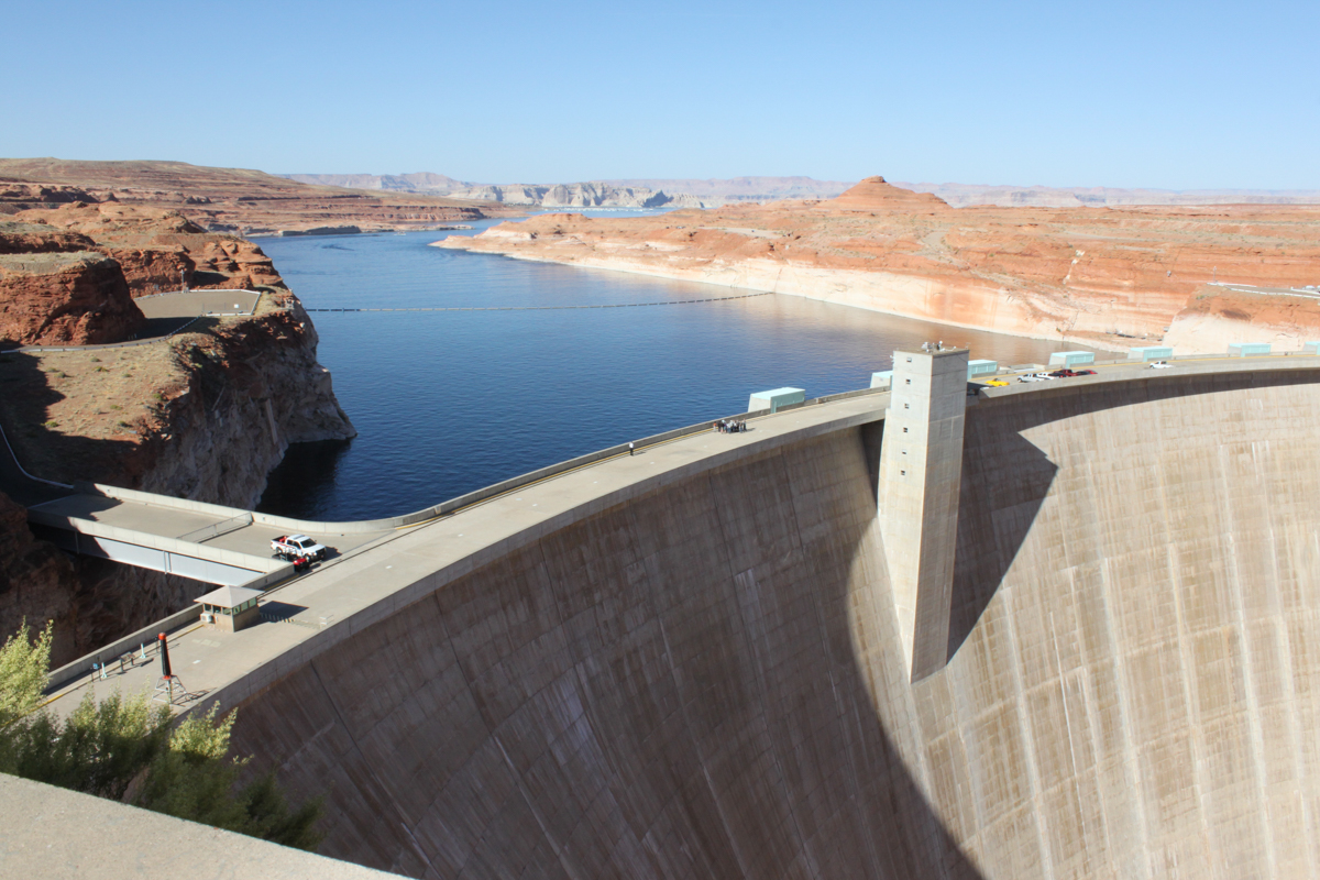 Carl Hayden Visitor Center에서 본 Glen Canyon Dam Bridge