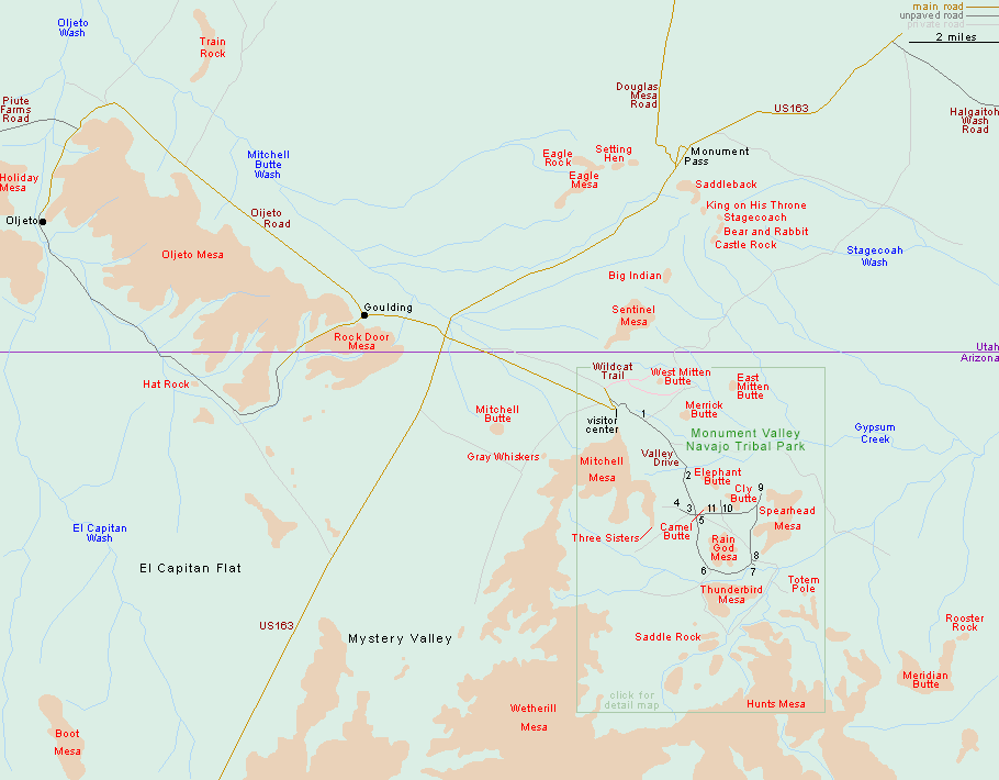 Monument Valley 석탑들의 이름이 있는 지도. Click here for more detailed interactive map.