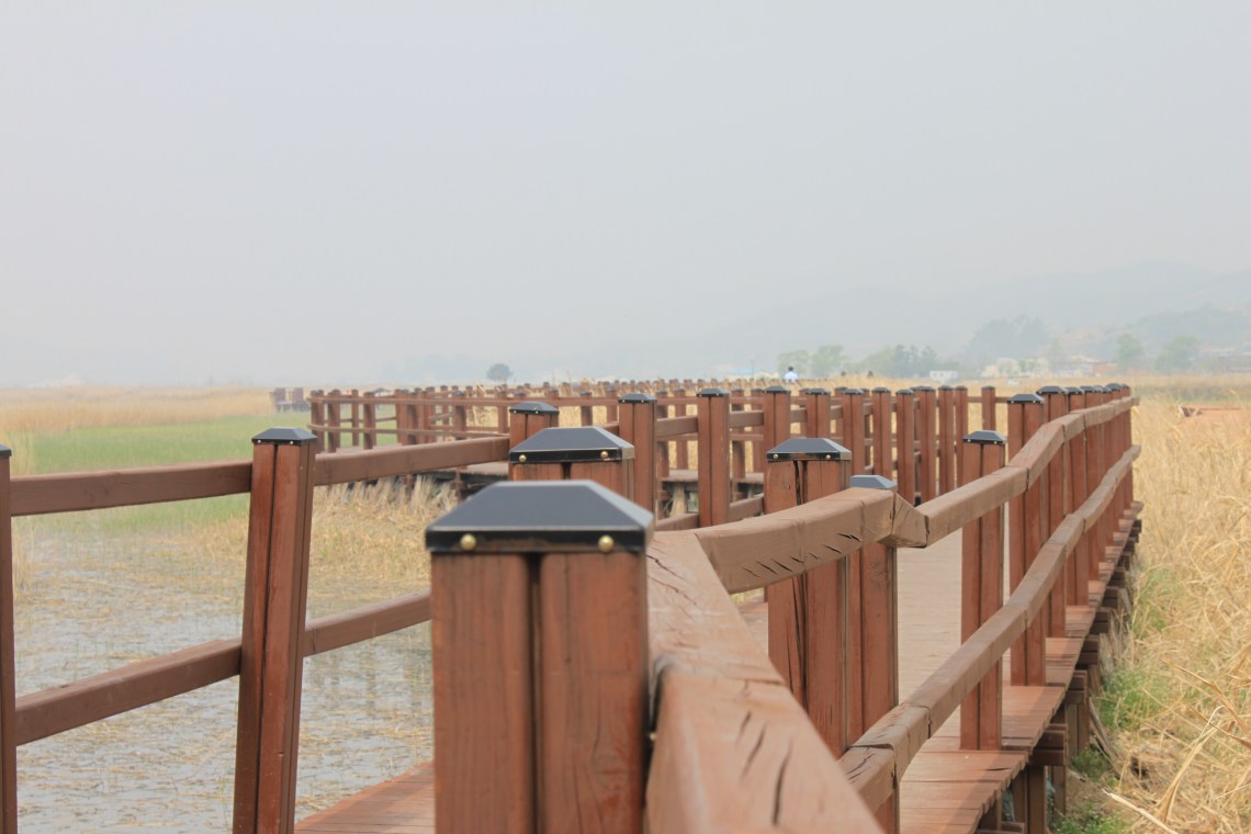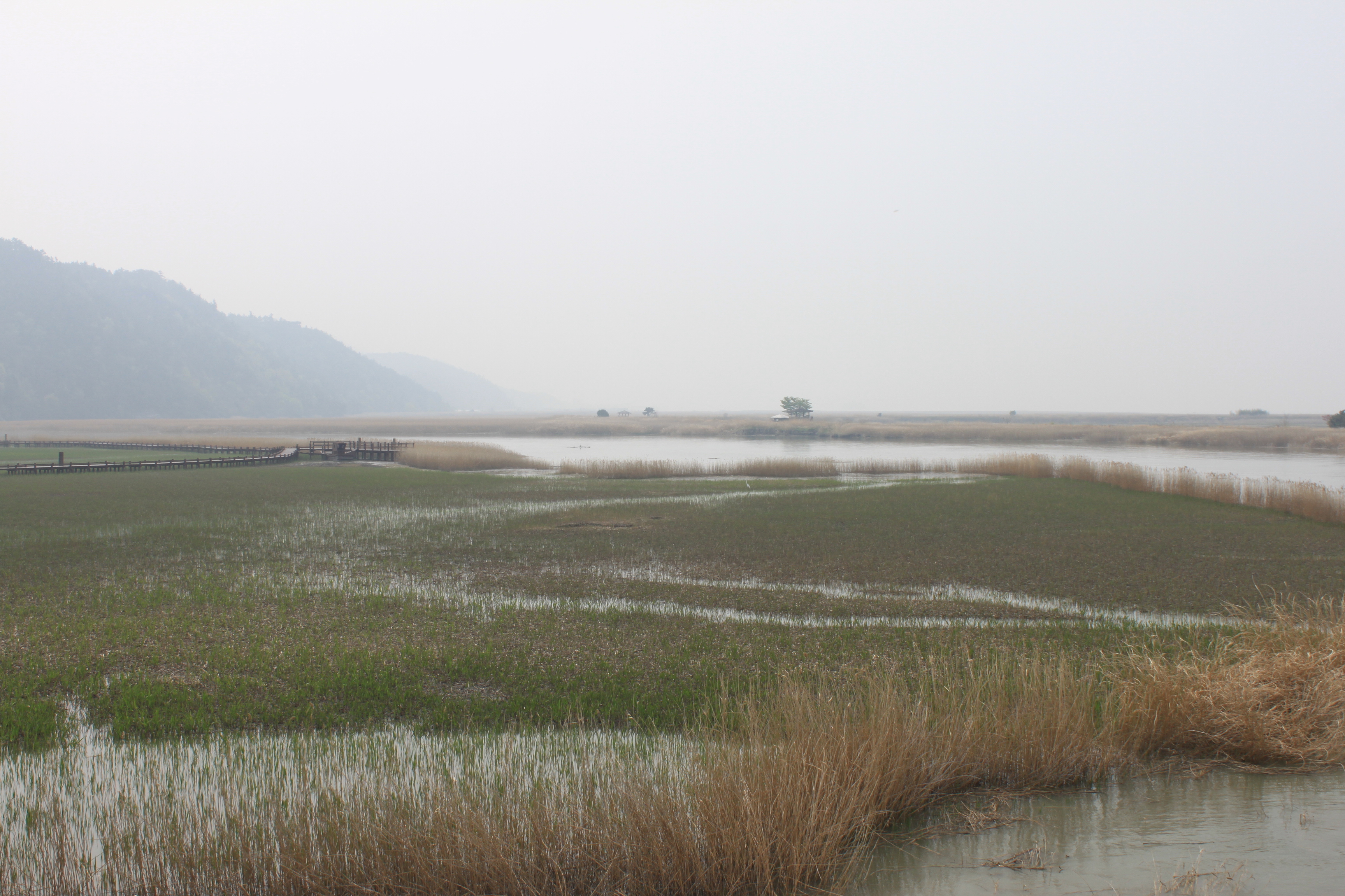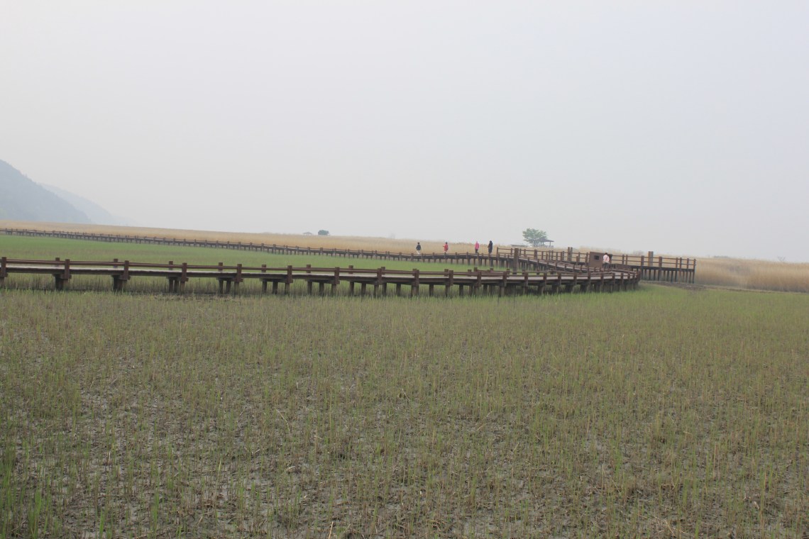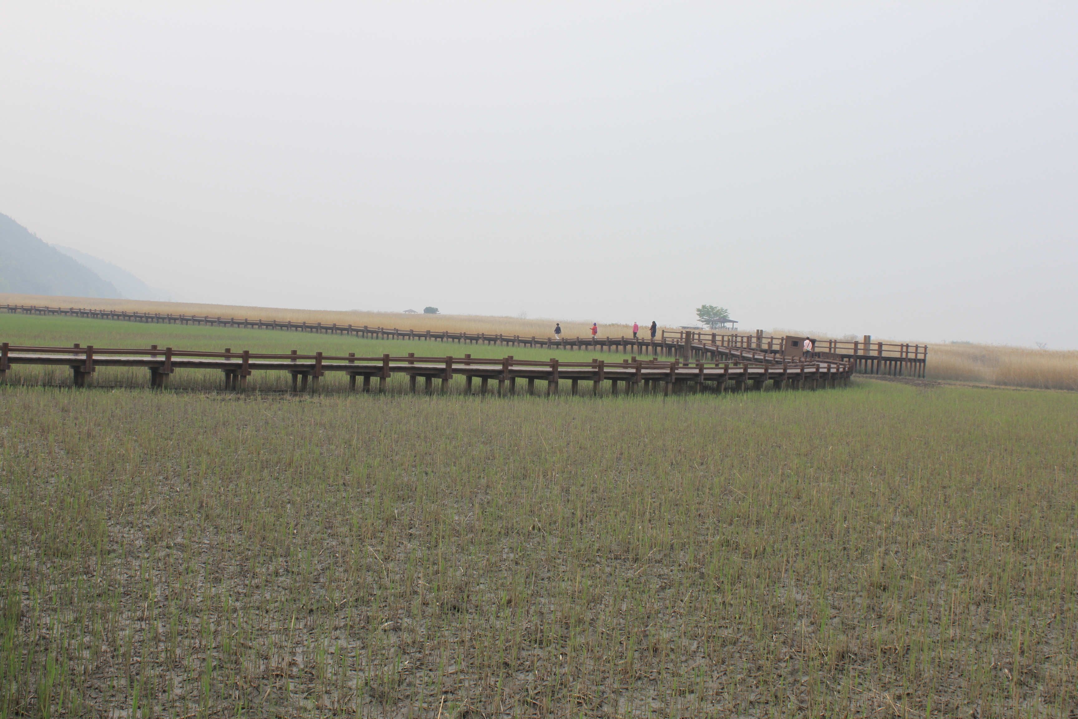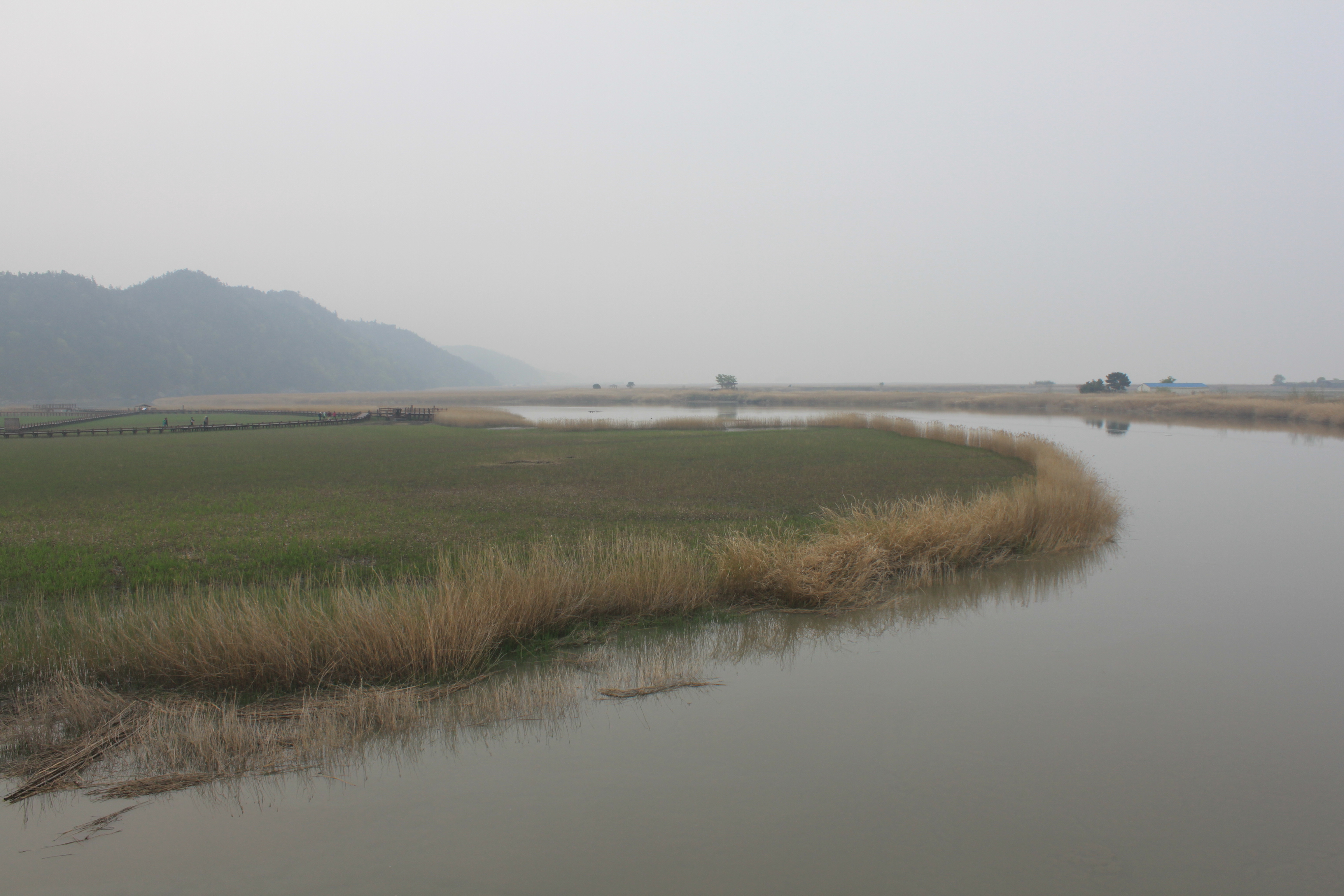 강 하구의 삼각주에 특히 갈대가 많아 갈대밭으로 명명되었고 근처의 용산에 오르면 주변 경치를 관망할 수 있다. 우리가 간 날은 바다안개가 살짝 드리워 사진이 욕심만 못하지만 소개한다.