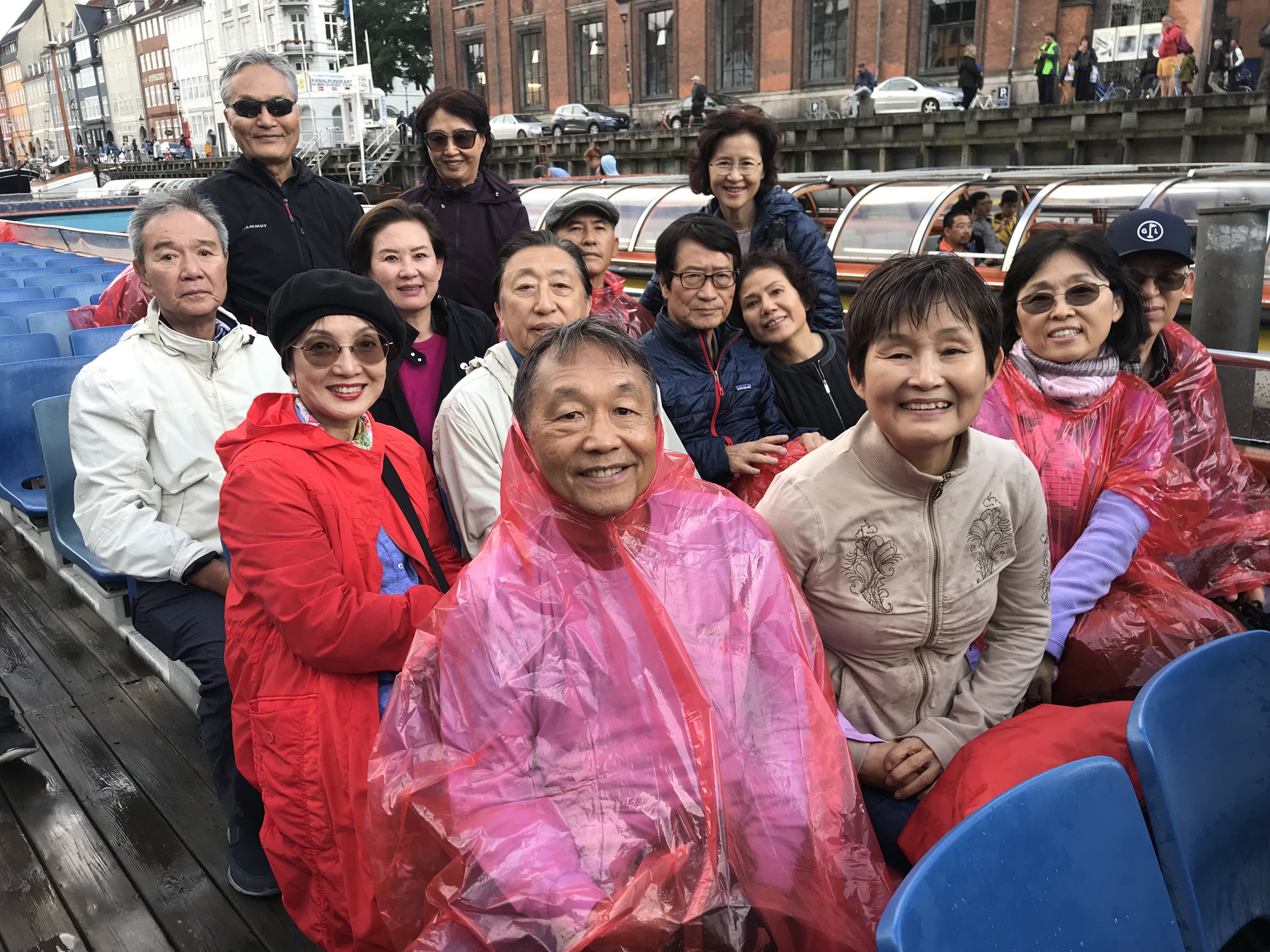 유람선을 타고 좁은 운하를 지나며 사진을 찍다 보니 큰 건물들은 너무 가까워 찍을 수가 없는 경우가 많았다. 그래서 높이 올라간 탑들을 주로 찍게 되었는데 아무리 그렇다 해도 코펜하겐은 탑의 도시라고 해도 과언이 아닐 것 같다. 유람선을 타고 한 40여분쯤 되었는데 드디어 비가 쏟아지기 시작하였다. 그런 일이 자주 일어나는지 배에는 일회용 비옷이 준비되어 있었다. 허겁지겁 입으려 하지만 워낙 얇은 자재로 만든 것이라 잘 펴지지도 않는다. 되는대로 뒤집어쓰기도 하며 여기저기서 한바탕 웃음들이 터져 나왔다.