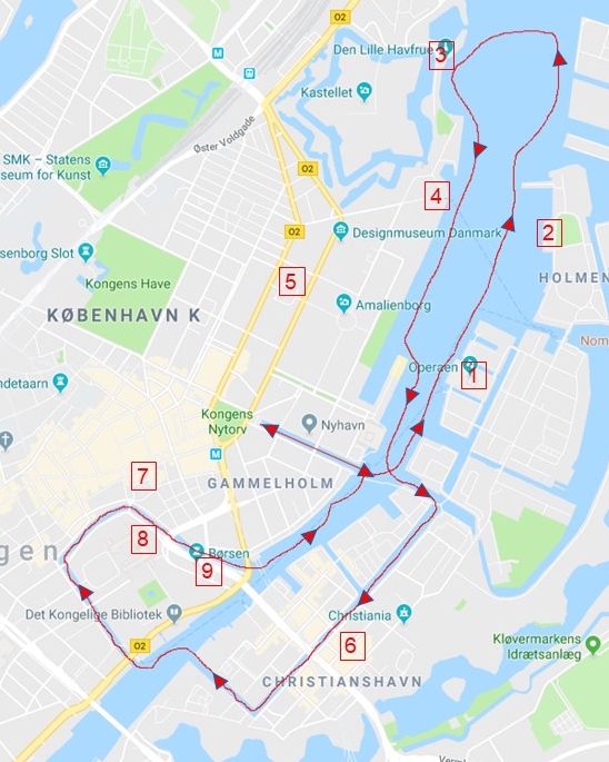 운하를 나와서 왼쪽으로 방향을 트니 바로 오른쪽에 오페라 하우스가 보인다. 2001년부터 2004년까지 건설하여 2005년에 개관한 코펜하겐 오페라 하우스는 덴마크의 국립 오페라관이다. 최근에 지어졌기에 세계적으로 가장 최신식 시설을 갖춘 오페라 하우스 중 하나로 알려져 있다. 오케스트라 크기에 따라 관람석을 최대 1703석까지 조정 가능 및 각 자리에서 시야가 막히는 것을 최소화한 설계로 호평을 받고 있다.