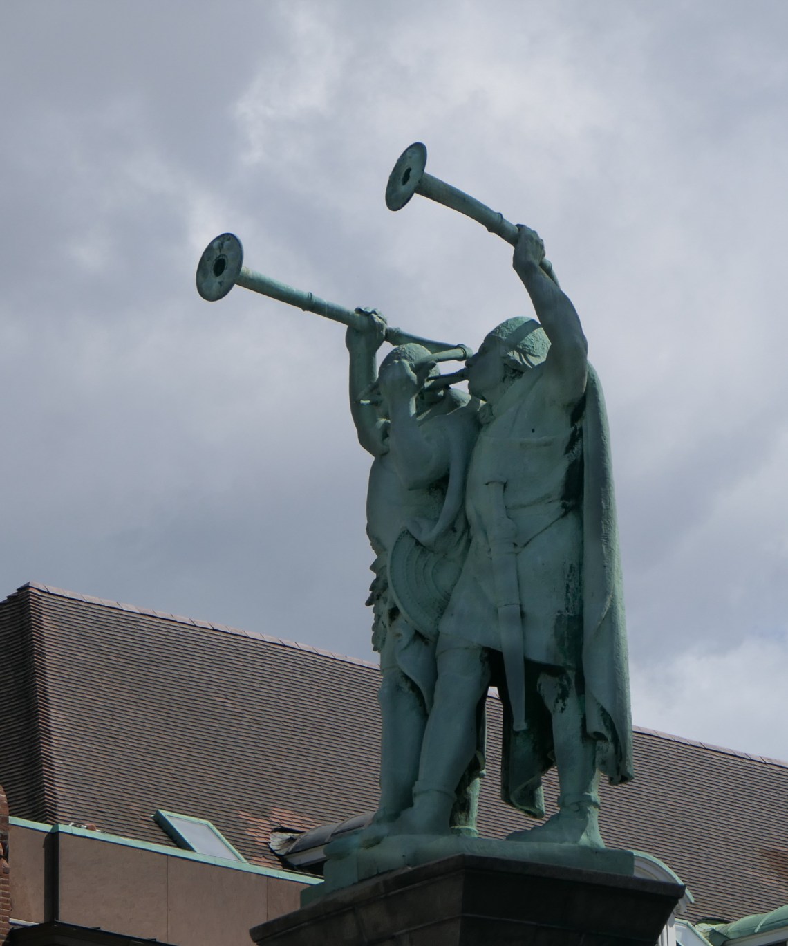 시청광장 북동쪽 길 건너편에 기둥이 하나 있고 그 위에 2명의 루어(Lur) 연주자 동상이 있다. 루어는 5내지 6 feet 길이의 관악기로 음정을 조절하는 구멍이 없다. 중세기부터 사용된 이 악기는 나무나 동으로 만들었고 북부 독일, 덴마크, 노르웨이 및 남부 스웨덴에서 발견되고 있다. 이 동상은 덴마크 맥주회사 Carlsberg가 회사 설립자 J. C. Jacobsen 생일 100주년을 기념하여 1914년에 시에 기증하여 오늘에 이르렀다.