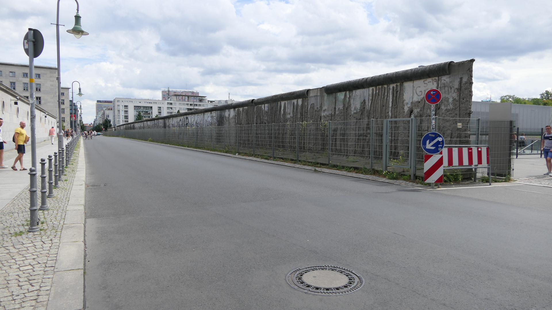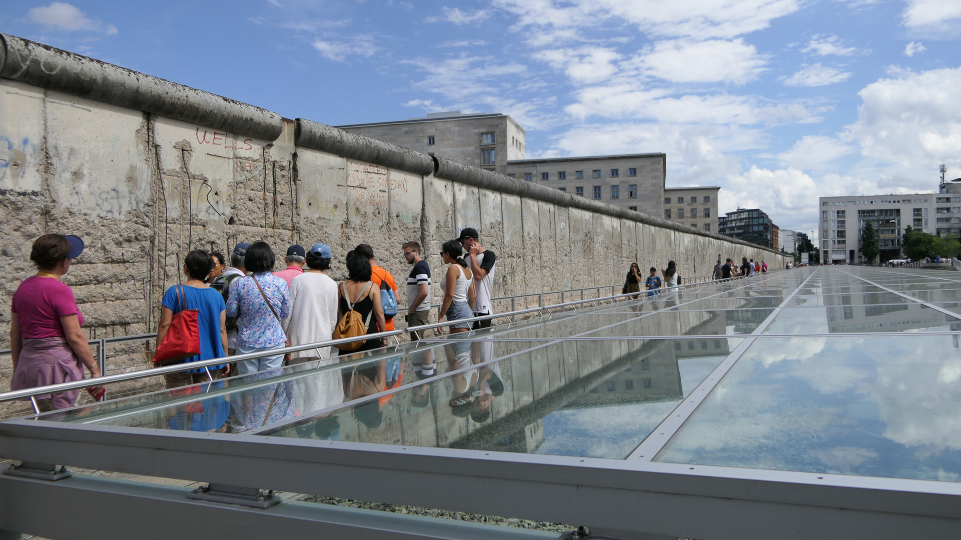 베를린 하면 가장 먼저 떠오르는 것은 분단 독일과 냉전시대의 상징이 된 베를린 장벽(Berliner Mauer, Berlin Wall)이다. 이 장벽은, 많은 사람들이 동 베를린과 서 베를린 사이에 있던 것으로 생각하지만, 사실은 동독 안에 있던 서 베를린을 완전히 둘러쌓았기에 서 베를린을 마치 섬과 같이 만든 장벽이었다. 2차세계대전 후 앞에서 언급했듯이 독일과 베를린은 동서로 나누어 졌다. 분단 독일 초에 소련의 스탈린은 강경 탄압정책으로 일관했으나 그 뒤를 이은 흐루쇼프(당시 한국에서는 ‘후루시쵸프’라고 했던 기억인데 지금은 이렇게 부르나 보다)는 유화정책을 택했다. 그 결과 동독과 동 베를린 사람들이 대거 서쪽으로 이주하기 시작하니 고육지책으로 나온 것이 장벽이다. 이 장벽에 관련된 사건사고는 너무 많기에 여기서는 그냥 지나간다. 베를린 장벽의 잔재들은 여기저기에 있는데 우리가 간 곳은 Topographie des Terrors(Topography of Terror, 공포의 지형) 앞에 있는 부분이었다.