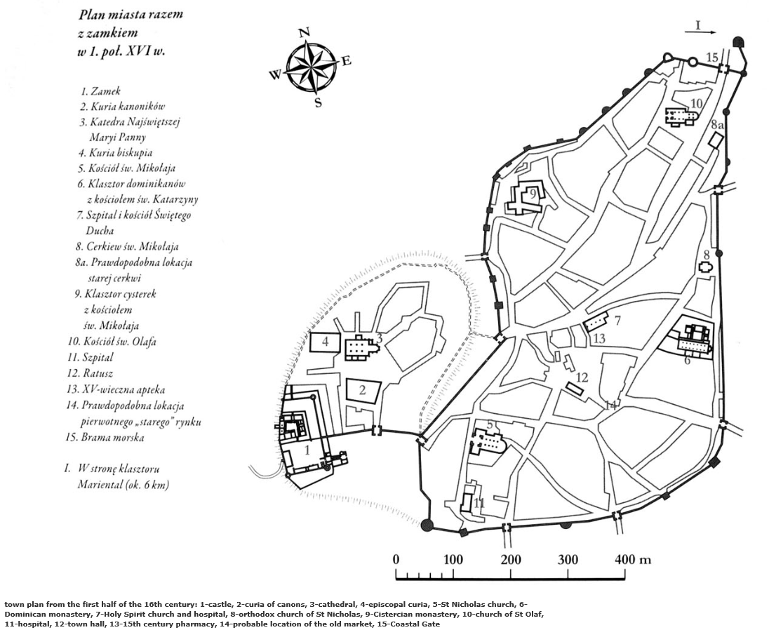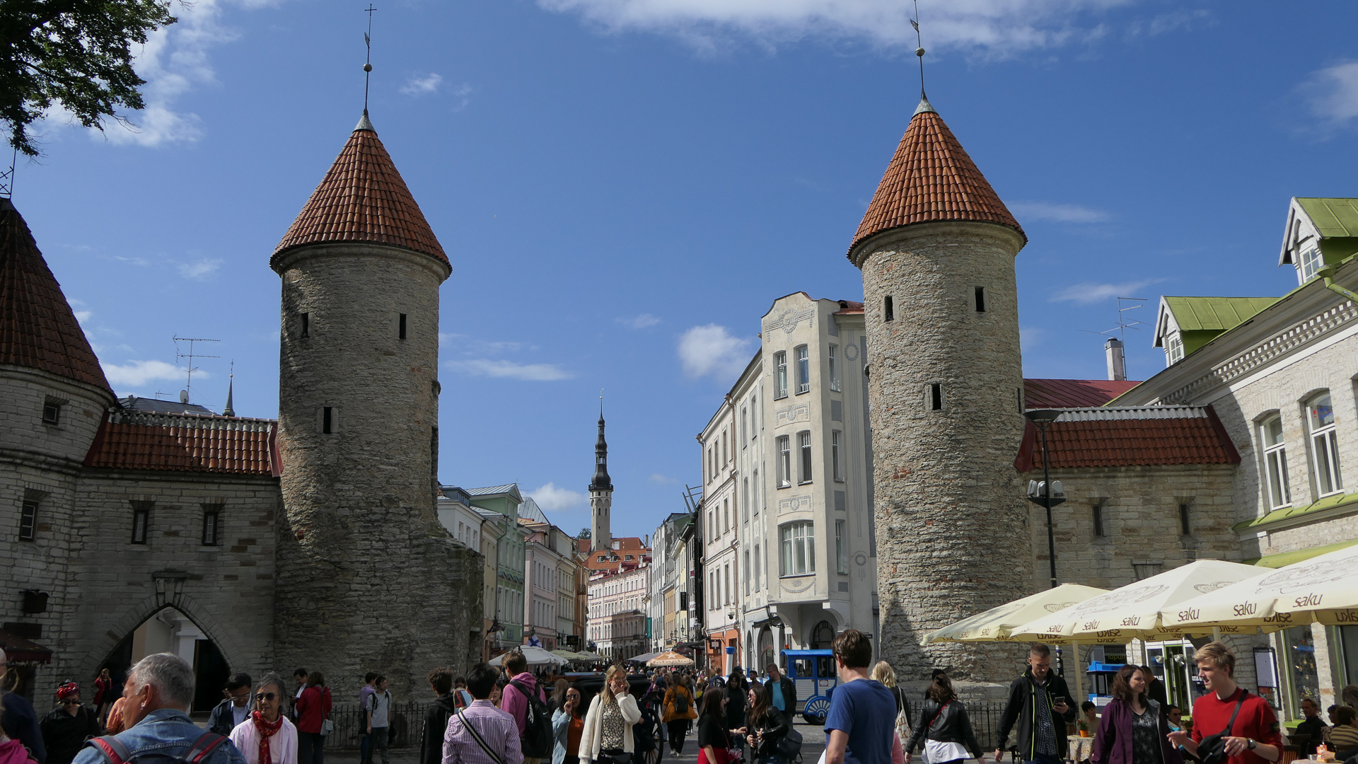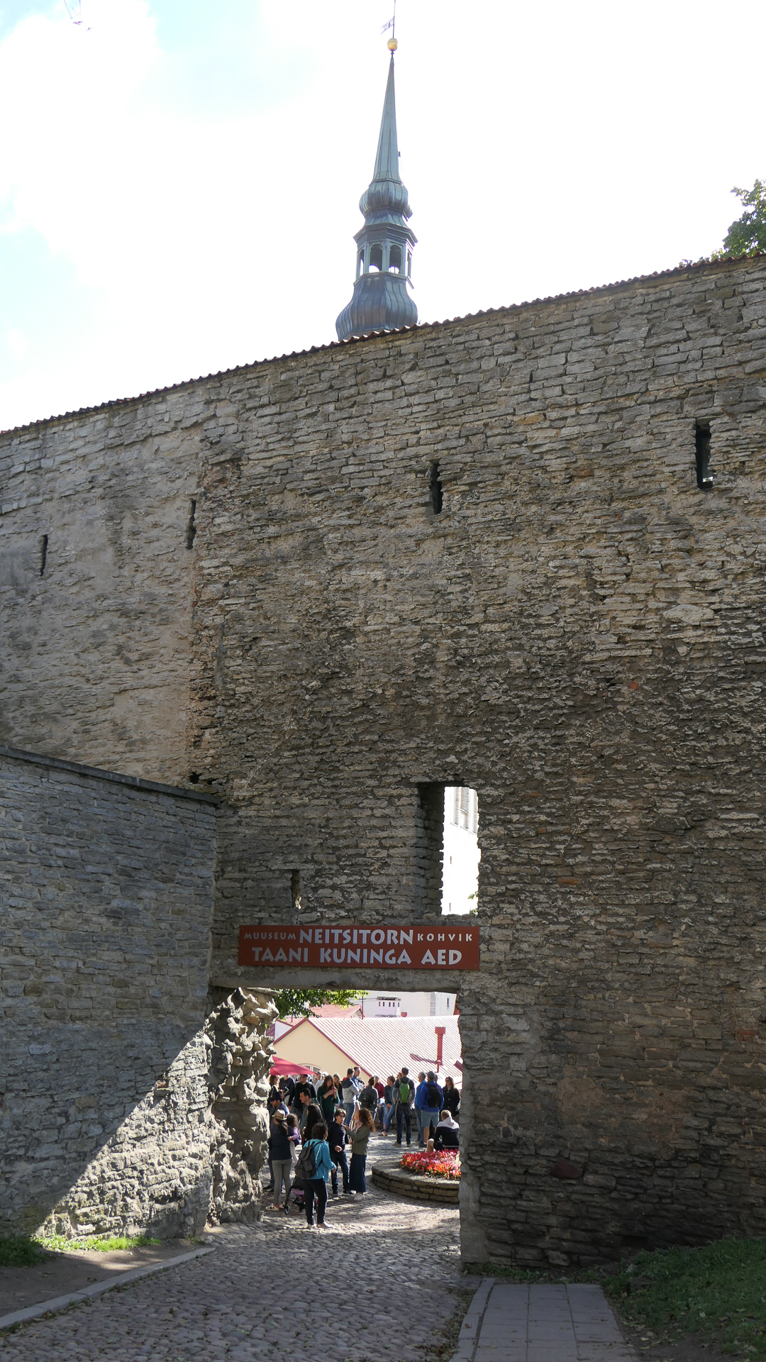 위 도면에서 12번이 시청광장이다. 시청광장 북쪽 가운데에 난 길 Mundi로 가다 Pikk에서 우회전, 네거리에서 Börsi Käik로 좌회전, Lai에서 우회전, Aida에서 좌회전, Laboratooriumi에서 우회전하여 성벽을 끼고 조금 가면 Suurtüki라는 길과 만나는데 여기서 성벽이 무너져 밖으로 나갈 수가 있다.