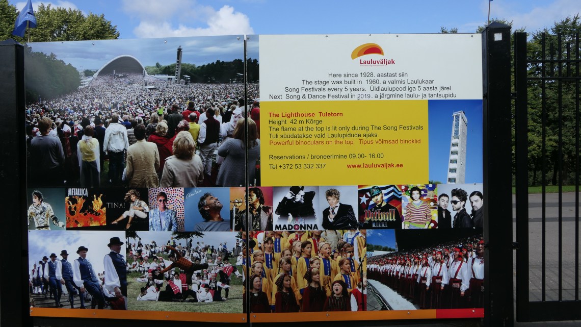 무대 왼쪽 너머로 보이는 크루즈 배노래축제장에서 건너다본 탈린 시가기념품 가게 – 지붕위에 풀은 자연적인 것이 아니고 일부러 기르는 것이라 한다전에 있었던 음악회와 2019년 축제에 관한 안내노래혁명에 지대한 영향을 끼쳤던 에스토니아 작곡가이자 지휘자 Gustav Ernesaks의 동상탈린 노래축제장 북동쪽에 있는 Pirita 공원에 있는 소나무가 우거진 산책길