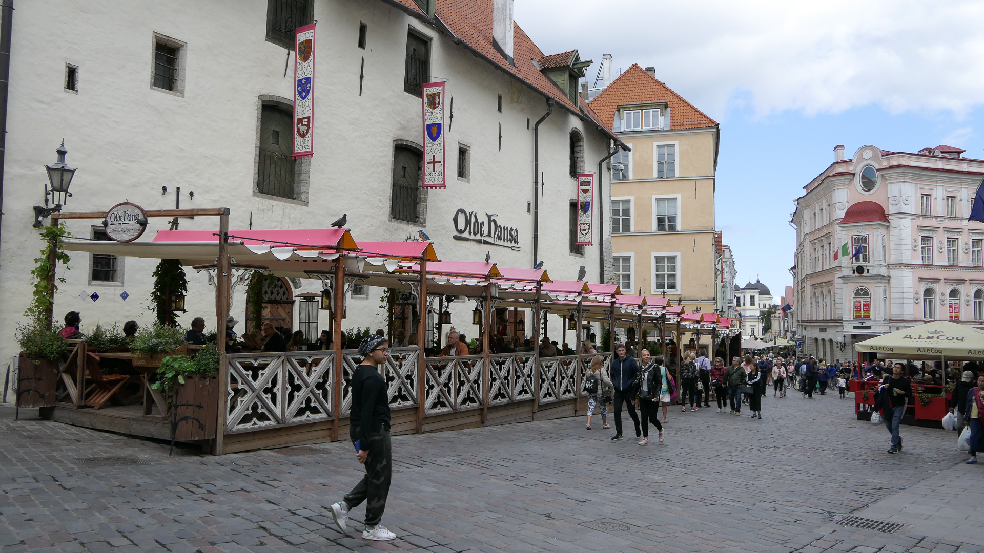 시청광장에 있는 야외식당들광장으로 통하는 기념품가게가 많은 좁은 골목길 Katariina Käik (St. Catherine’s Passage)광장의 북서쪽에서 북동쪽으로 찍은 panorama 사진광장의 골목길과 그 뒤로 보이는 시청건물 – 종탑 때문에 교회로 착각하기 쉽다망루가 있는 Viru GateViru Gate에 있는 마차택시