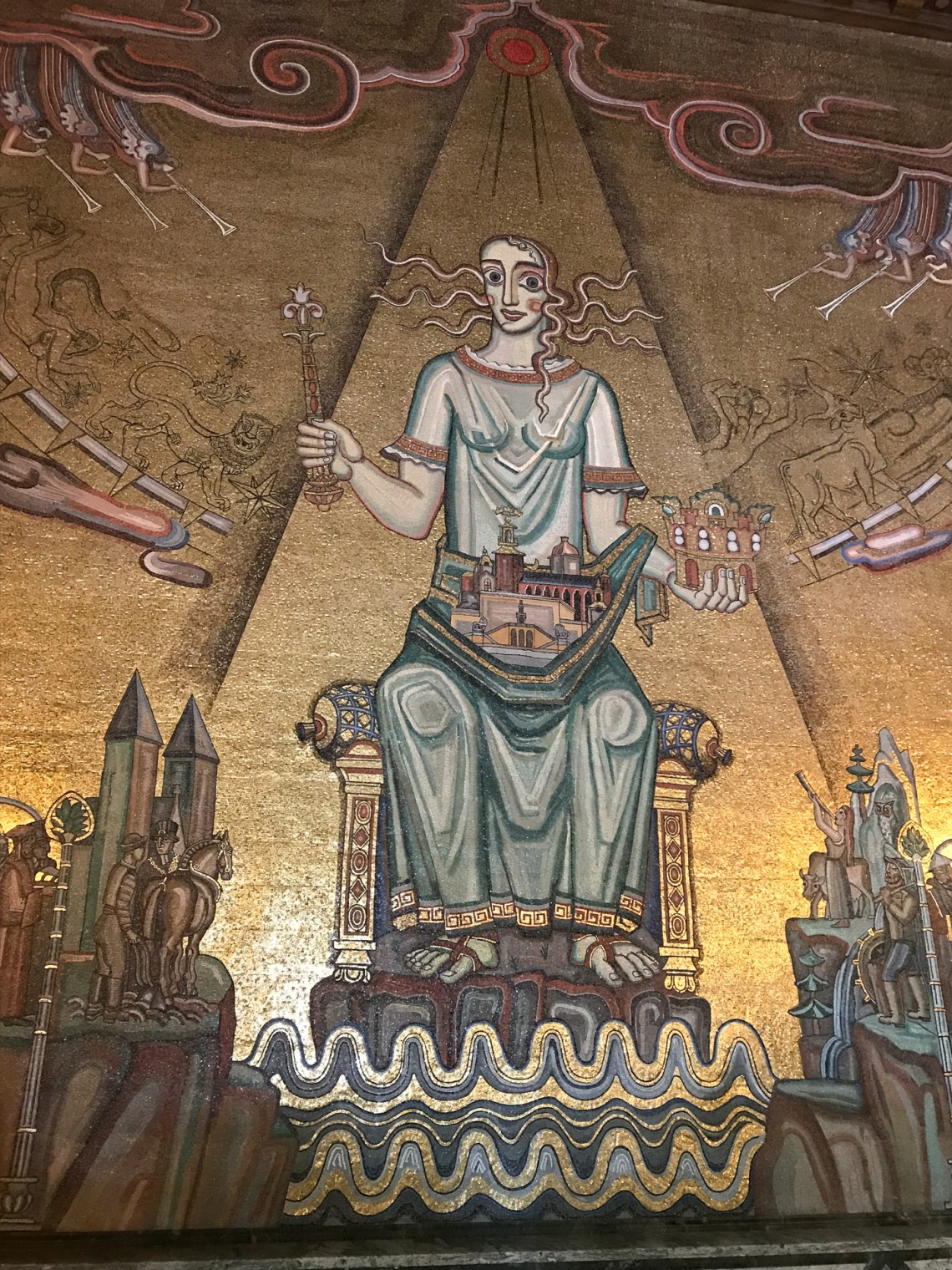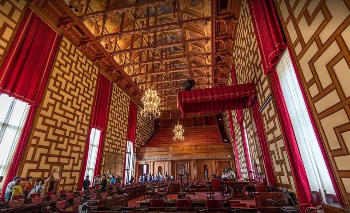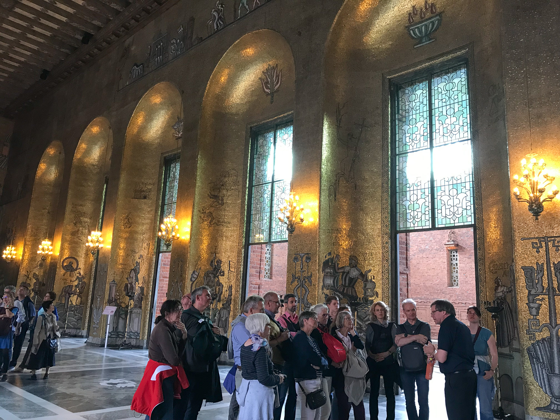 이 Blue Hall은 원래 푸른색 회벽으로 마무리하기로 되었으나 설계자가 건축 중 붉은 벽돌로 자재를 바꾸었지만 그대로 Blue Hall로 불리워지고 있다 한다. 음악당에서 노벨 상 수상식이 있은 후 시청으로 옮겨와 만찬이 열리는 곳이다. 10,000개 이상의 파이프로 구성된 스칸디나비아에서 두번째로 큰 파이프 오르간이 여기에 있다.