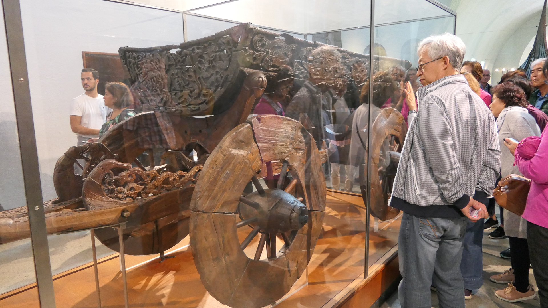가장 화려하게 장식된 Oseberg 배에서는 여자 시신 2구와 많은 유물들이 발견되었다. 부서져서 여러 조각으로 발견된 이 배를 복구하는데 21년이나 걸렸다 한다.
