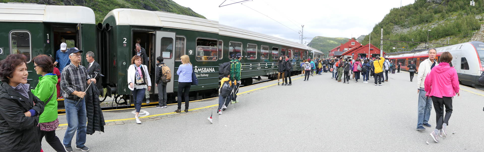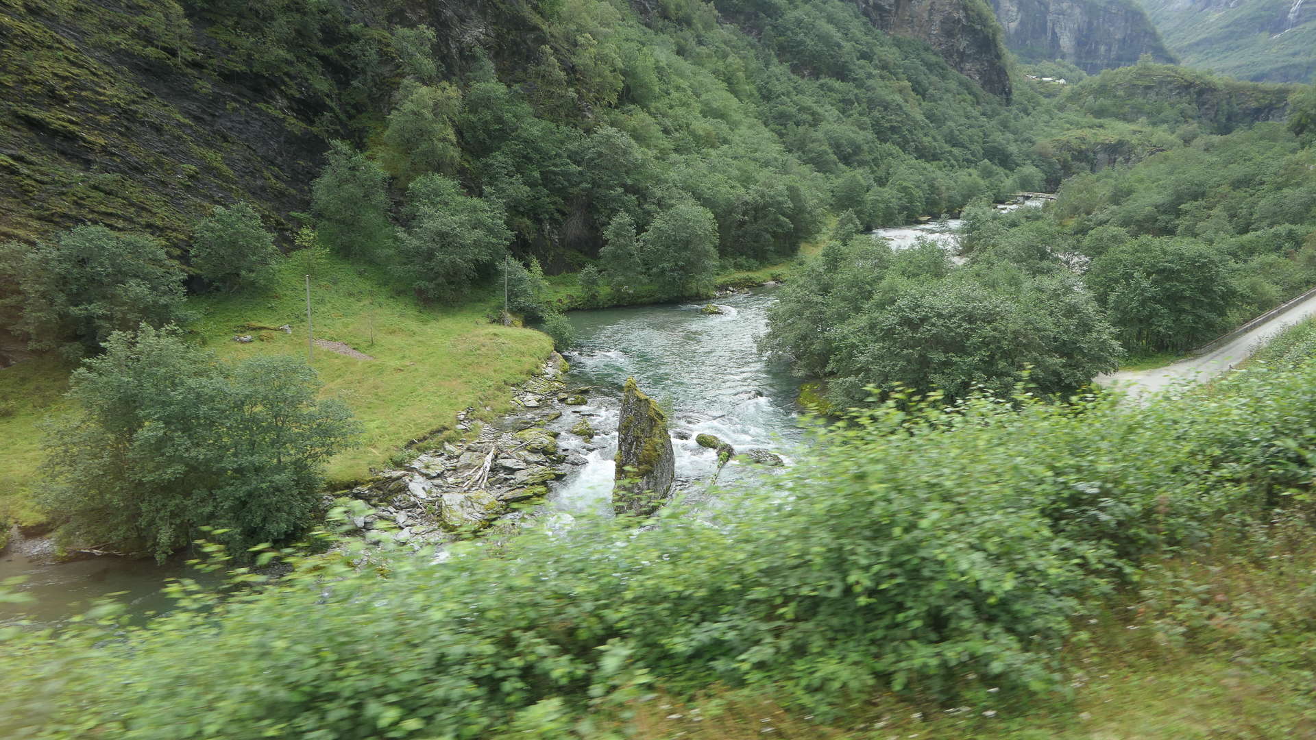 Bøyabreen(뵈이야 빙하)를 보고 다시 Skei로 돌아가 일박한 후 오늘은 Flåm(플럼)으로 가서 그 유명한 Flåmsbana(Flåm Railway)를 타는 날이다. Skei에서 5번 도로를 다시 타고 Norsk Bremuseum(Norwegian Glacier Museum)을 지나 남동쪽으로 계속 가서, Mannheller 선착장에서 페리를 타고 Sognefjord의 지엽을 건너 Fodnes에 도착하여 계속되는 5번으로 가다, E16번을 만나면 우회전하면 남서쪽으로 가게 된다. 그러면 곧 Lærdalstunnelen(라달 터널)을 통한 후 Aurlandsfjord를 끼고 좀 가면 Flåm에 도착한다.