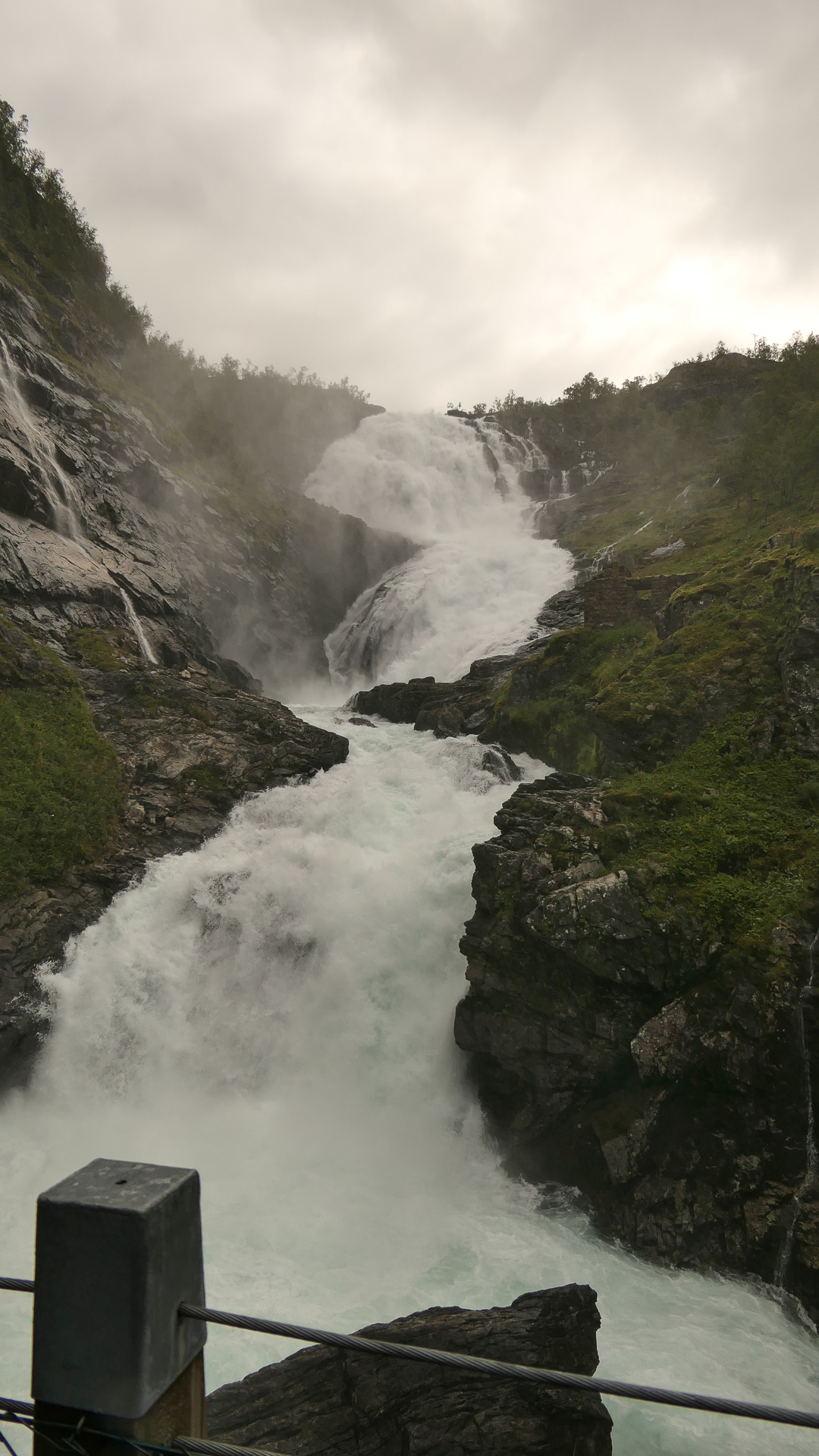 Fjosfossen(슈스 폭포)는 Myrdal역에서 약 0.9 mile (1.5 Km) 북동쪽에 위치해 있다. 이 폭포의 높이는 총 738 ft (225 m)로 상하 2 부분으로 나뉘어져 있다. Flåm 기차는 중간부분에 서는데 이곳에서 보이는 폭포는 305 ft (93 m) 정도의 높이이다. 여름철에 관광객들을 위해서 스칸디나비아 전설에 등장하는 숲속의 유혹의 요정 Huldra의 춤이 공연된다.