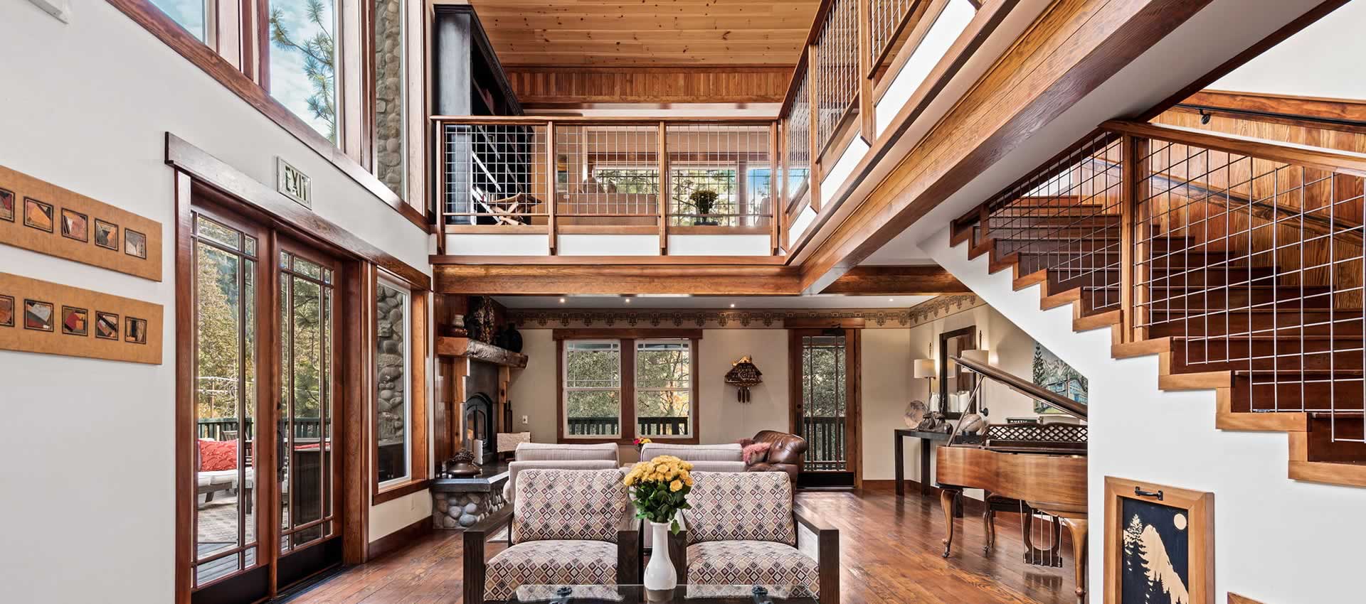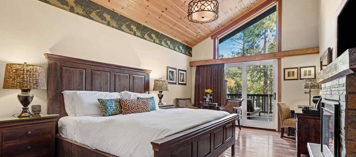 우리는 Grand Idyllwild Lodge에 묵었는데 boutique hotel로 고즈넉하여 간단히 소개한다. 방이 총 9개, 각 방이 다 다른 구조와 가구로 치장되어 있는데, 특히 3층에 있는 4개의 방은 전망도 좋고 응접실과 deck 및 2층에 있는 great room 사용이 편리하여 좋았다. 4집이 함께 가서 3층 방을 다 사용하면 저택을 빌린 것 같은 분위기가 될 것 같다. 3층에 있는 방만 호텔 내부로 문이 나 있고 다른 방들은 다 밖에서 직접 들어가게 되어 있다. 우리가 묵은 방 Harmony는 3층에 있는데 slopped beam ceiling으로 넓은 느낌을 주었고, 창으로 Lily Rock이 보이며 밤에는 별이 보여 운치를 더했다.