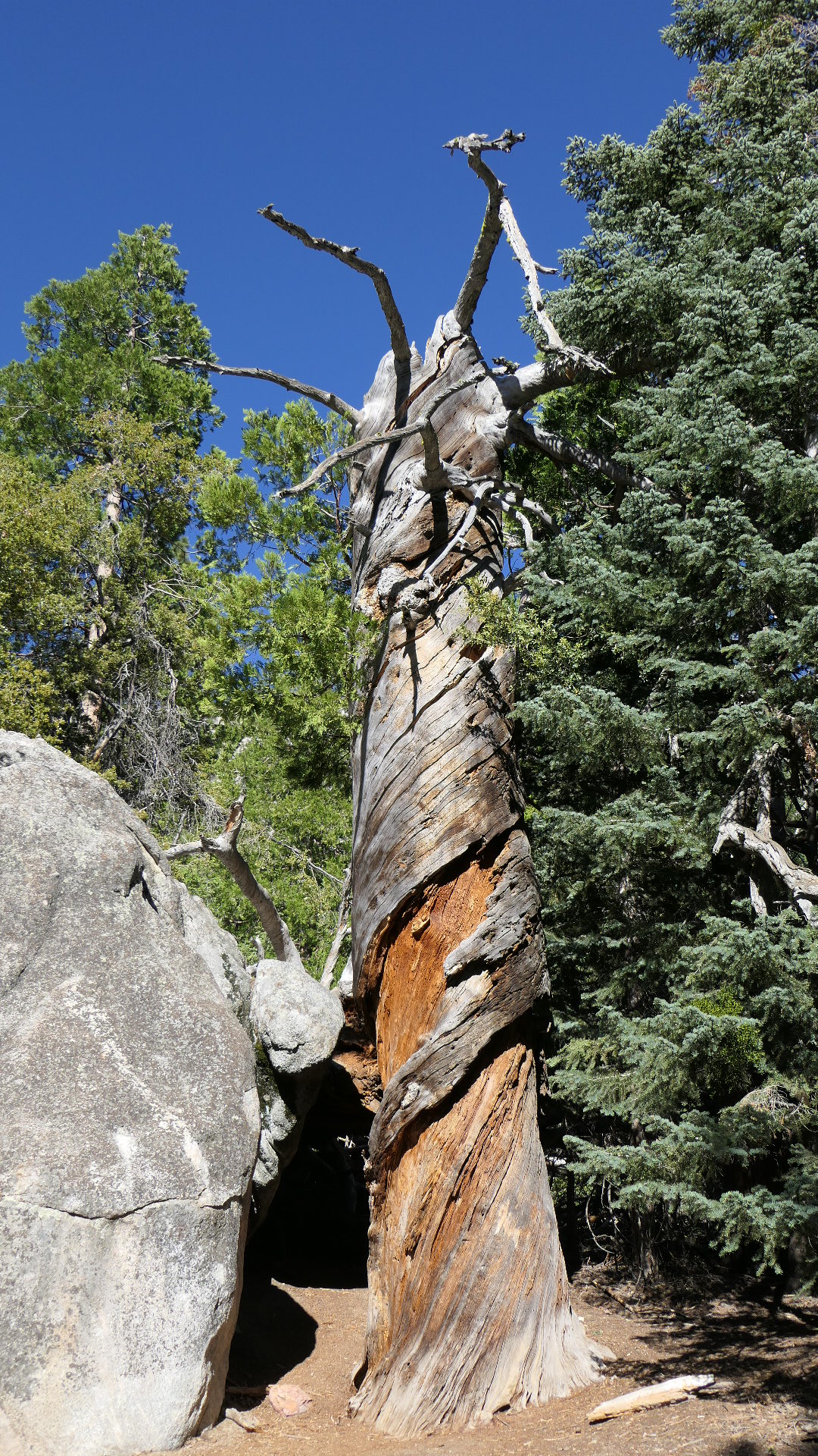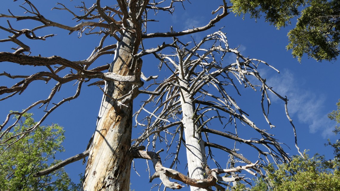 Devil’s Slide Trail을 걷다 보면 죽은 나무들이 간간이 눈에 띄는 데 살아있는 나무보다 묘한 아름다움을 보이고 있다. 이 나무들은 Ancient Bristlecone Pine Forest에서 죽은 듯하지만 살아있는 나무들과는 또 다른 도도함이 느껴진다.