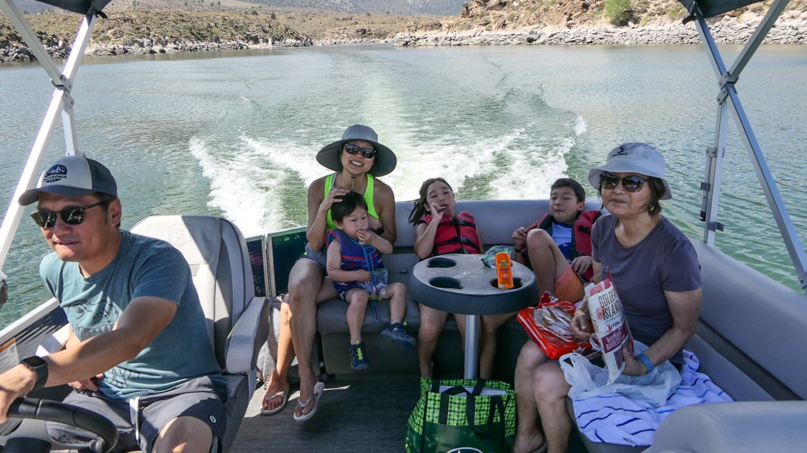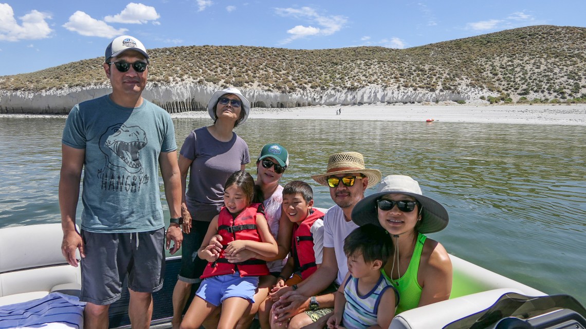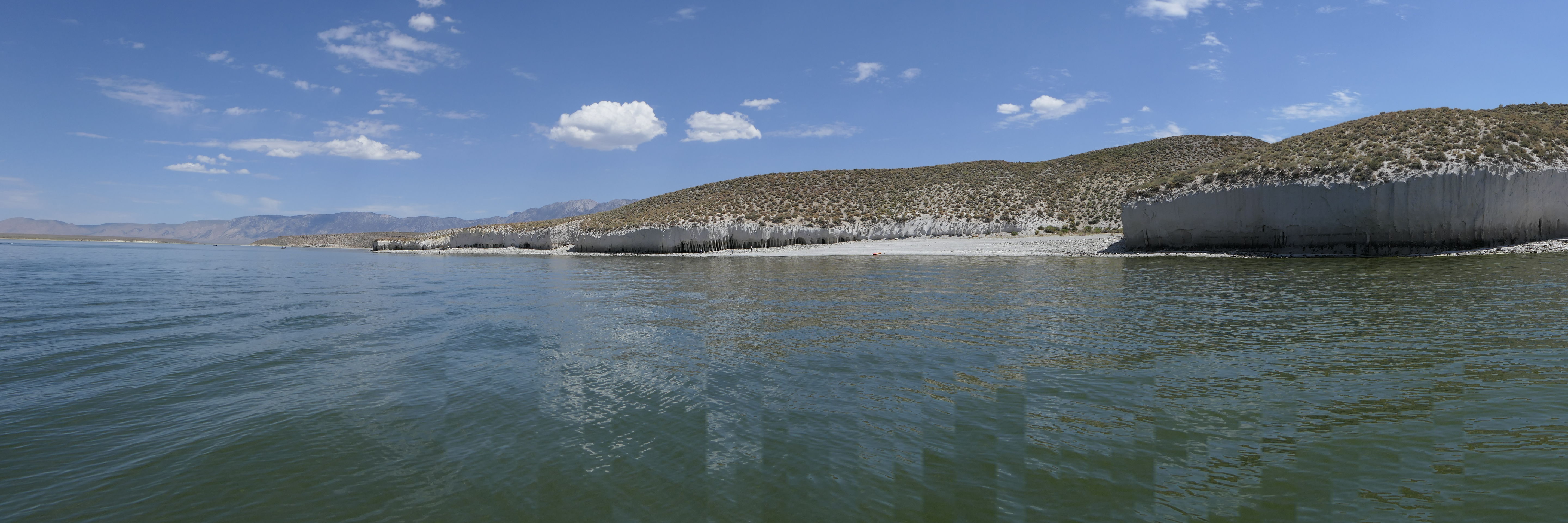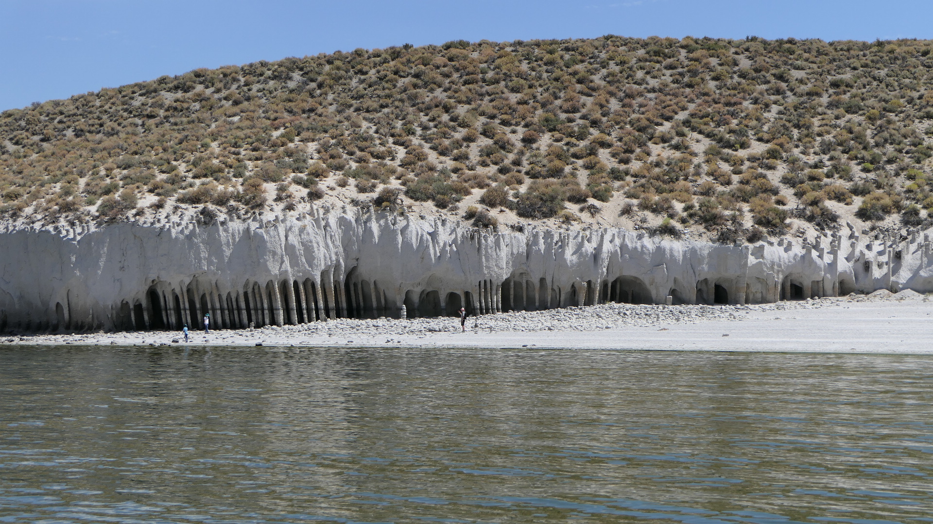 Crowley Lake이 생긴 후 호수의 동쪽에 있는 언덕에 진기한 돌기둥(Stone Column)들이 나타나기 시작했다. 지질학자들이 연구한 바에 의하면 이 지역에는 약 760,000년 전에 거대한 분화(噴火)가 있었다. 그때 분출된 화산재가 일대를 뒤덮었는데, 쌓여 있던 눈이 녹아 뜨거운 화산재 사이로 스며들며 급격히 수증기가 생성되었다. 수증기가 피어오르는 과정에 화산재 사이사이에 미세한 구멍들이 뚫리며 heat pipe와 같은 작용을 하였다. 그 열에 광물질들이 녹아서 수많은 구멍들을 채우고 쉽게 부식되지 않는 기둥들이 형성되었다. 저수지가 만들어진 후 호수의 물결이 풍화작용을 가속시켜 약한 부분들은 떨어져 나가며 지금의 기둥들이 나타난 것이다. 이 돌기둥들을 보려면 험한 비포장도로를 4WD로 가야하고 1 mile 정도 하이킹을 해야 하는데 손주들을 데리고 간 가족여행이라 배를 빌려 타고 쉽게 보기로 하였다. 그런데 landing이 허용되지 않고 해안선에서 거리유지 등 조건이 까다로워 멀찍이 배에서 보아야 했다.