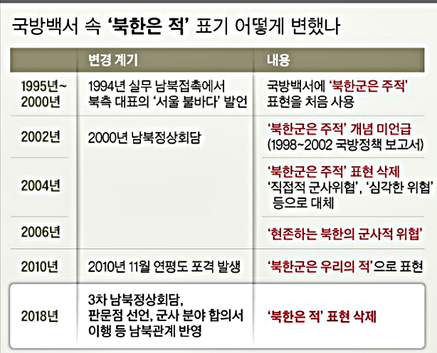 이 사태에서 필연적으로 생각해 보아야 할 상황이 대한민국의 경우이다. 필자는 두가지만 비교해 보고 싶다. 우선 미국/바이든은 탈레반과 맺은 협정을 그들이 지킬 것으로 믿었다는 사실이다. 미국은 아무리 야만적인 행동을 하는 국가와의 전쟁에서도 제네바 협정 등을 잘 지키도록 군인들을 교육하고 교전규칙도 까다롭다. 포로들 참수를 마지않는 테러리스트들과도 말이다. 그동안 우리가 보아온 북한의 국제적 또는 한국과의 약속이행 성적은 어떤가? 막무가내 식으로 제 멋대로 하는 북한, 그들의 말이나 약속을 순진하게 믿고, 군복무 기간을 줄이고 국군의 훈련을 미루거나 축소하며, 국가의 미래를 무사안일하게 설계하는 것이 과연 타당한 일인가? 그 다음으로 집고 싶은 것이 대한민국 국군의 준비태세이다. 아프가니스탄 정부군은 주적(主敵) 개념이 없었다. 그들에게 탈레반은 목숨을 걸고 싸워서 막아야 할 주적이 아니었다. 탈레반은 그저 산 사람의 목을 따는 대항할 수 없는 무시무시한 존재였다. 그러니 주적으로부터 사랑하는 가족과 친지의 생명과 자유를, 나라를 지켜야 한다는 개념도 없는 것이다. 종교적 광신자로 구성된 광폭하기 그지없는 무리들이지만 같이 살아야 하는 한 민족이라는 생각이었을 것이다. 대한민국은 1995년에 최초로 ‘북한군은 주적’이라는 표현을 국방백서에 실었다. 그후 정권의 이념과 남북관계의 변화에 따라 주적에 대한 표현이 이리저리 바뀌다가, 드디어 2018년부터 북한군이 적이라는 표현이나 개념이 완전히 사라졌다 – 중앙일보 해당 기사 참조. 새로운 개념은 대한민국 영토와 국민의 생명 및 재산을 위협하는 모든 세력을 적으로 규정하고 있다. 실제로 그런 위협을 상시 직접적으로 하고 있는 나라가 북한을 제외하고 또 어디에 있나? 왜 이 순간에도 휴전선에서 국군은 경비를 하나? 그런 상대를 명확하게 주적이라 하지 않는다면 국군의 존재와 휴전선 경계 이유를 흐리는 일이다.