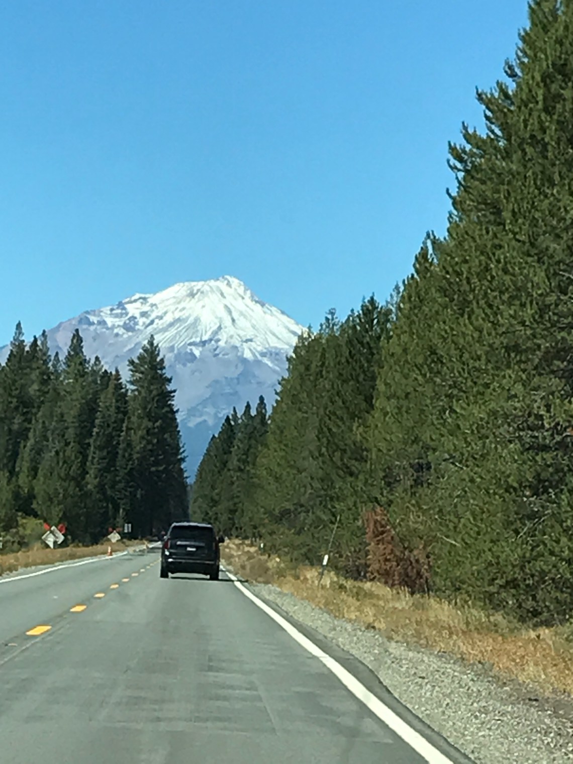 McArthur-Burney Falls State Park에서 짧지만 아름다운 하이킹을 끝내고 CA-89으로 올라가는데 뜻밖의 광경에 입이 떡 벌어졌다. 다름아닌 눈 덥힌 Shasta 산이 눈 앞에 나타난 것이다. Shasta 산은 높이가 14,179 ft (4,322 m)로 California 주에서 4번째로 높은 산이다. Shasta 산은 화산이며 1786년 대 폭발 후 쉬고 있는 상태지만 지진과 가스 분출이 지속적으로 일어나고 있다. 미 국립지질학회는 이 산이 대략 600년 주기로 폭발할 것으로 예측하고 있다.