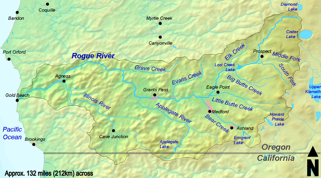 Rogue River는 Cascade 산맥의 일환인 Crater Lake 북쪽에서 발원하여 대체적으로 서쪽으로 흘러 태평양으로 흘러 들어가는 Oregon 주 남부에 있는 강이다. 화산에서 분출된 용암으로 형성된 바위가 많은 험준한 지형을 뚫고 흐르는 Rogue River는 이름에서 떠오르는 악당과 같이 광폭하게 흐르는 부분이 많아 class 3+ whitewater rafting의 성지로 알려져 있기도 하다.