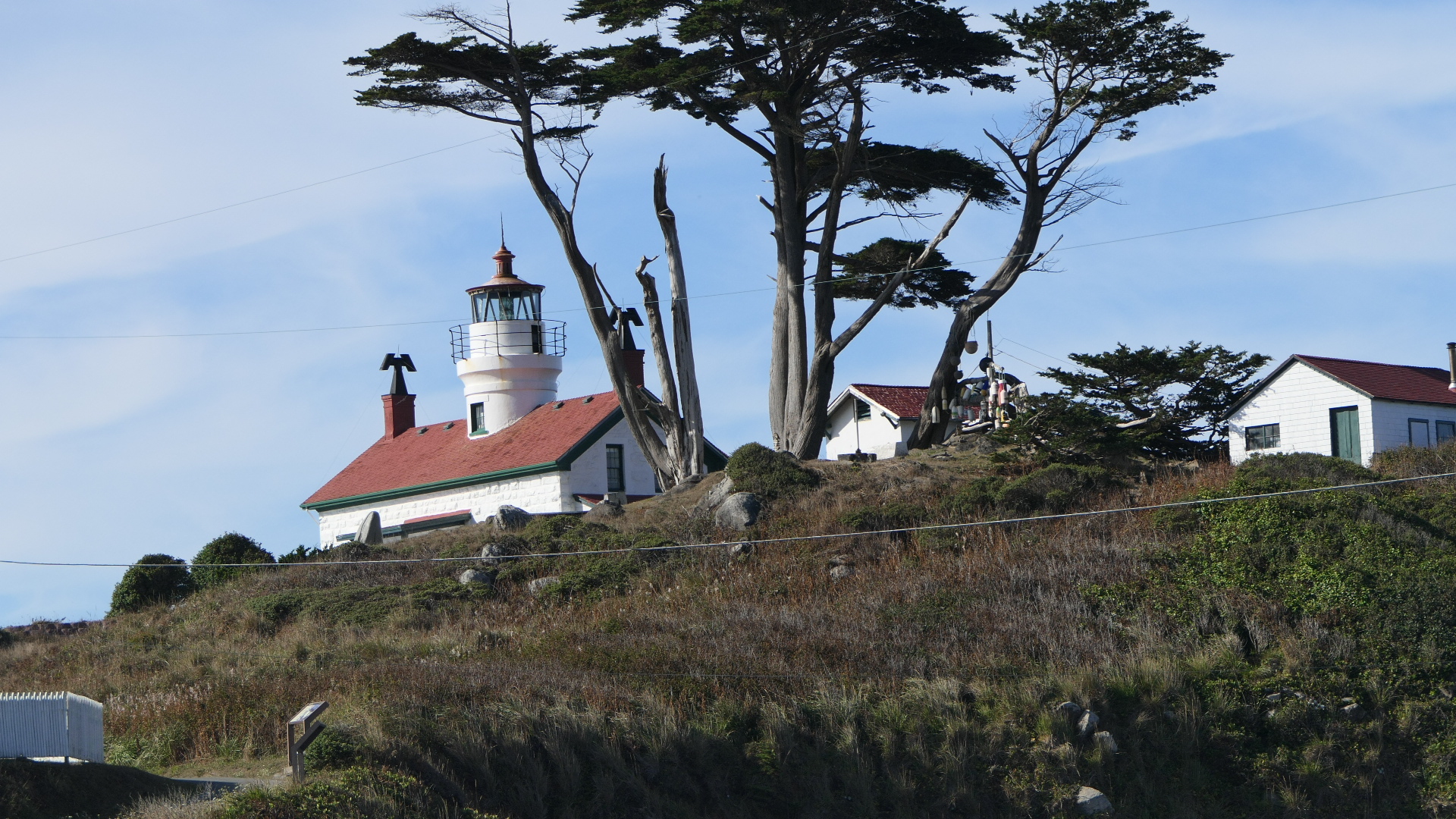 오늘도 갈 길이 멀어 일찍 일정을 시작하였다. 먼저 찾아 나선 곳은 St. George Reef Lighthouse였다. 이 등대는 1892년에 해안에서 6 mile(9.7 Km) 정도 떨어져 있는 암초들 중 하나인 St. George Reef 위에 새워졌다. 이 암초 때문에 크고 작은 해난사고가 많이 있었는데, 1865년에 발생한 225명의 인명 피해를 낳은 사고가 등대 건축의 직접적 요인이 되었다. 이 등대는 파도에 노출되기 때문에 높이 50 ft(15 m)의 축대 위에 마치 중세의 성과 같이 견고하게 지어졌다. 미국에 있는 등대 중 가장 건축비가 많이 들은 등대이다. 거센 파도에 의해 여러 차례 파손과 복구가 반복되었으며, 열악한 근무환경으로 등대지기들도 기피하는 곳이 되었다. 이에 1975년에 운영이 중단되었으며 부표에 설치한 등대로 대체되었다. 지금은 이 등대를 유지보전하기 원하는 자원단체에 의해 헬기를 통한 관광이 가능하다. 호텔을 떠날 때 안개가 자욱하였지만 혹시나 하며 주차장에 도착하였다. 아쉽게도 안개는 걷히지 않아 시야는 1 mile이 채 안 되는 것 같았고 등대는 볼 수가 없었다. 등대 사진은 빌려온 사진으로 대신한다.