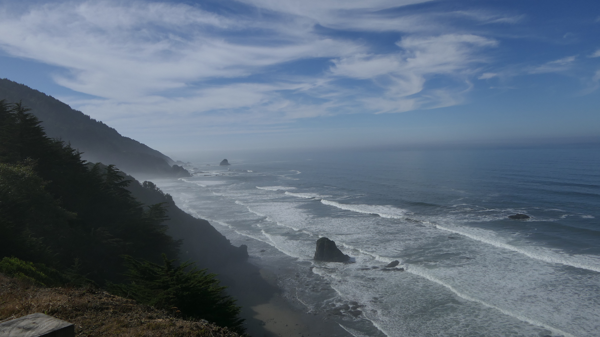 Crescent Beach Overlook은 Crescent City 시내를 벗어나 US-101 남쪽으로 조금 가다 나오는 Enderts Beach Road 끝에 있다. 아직도 안개가 끼어 있고 거친 바람이 부는 북가주 태평양의 아름다움을 카메라에 담아보았다. 한순간 해가 살짝 나오며 전혀 다른 느낌의 사진이 찍힌다.