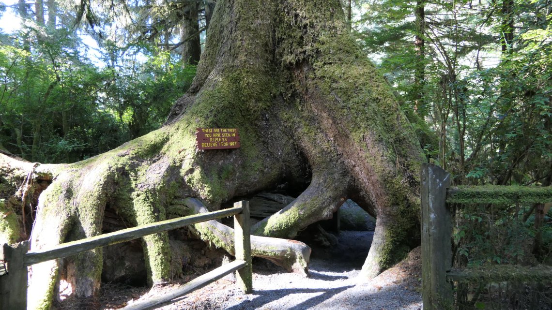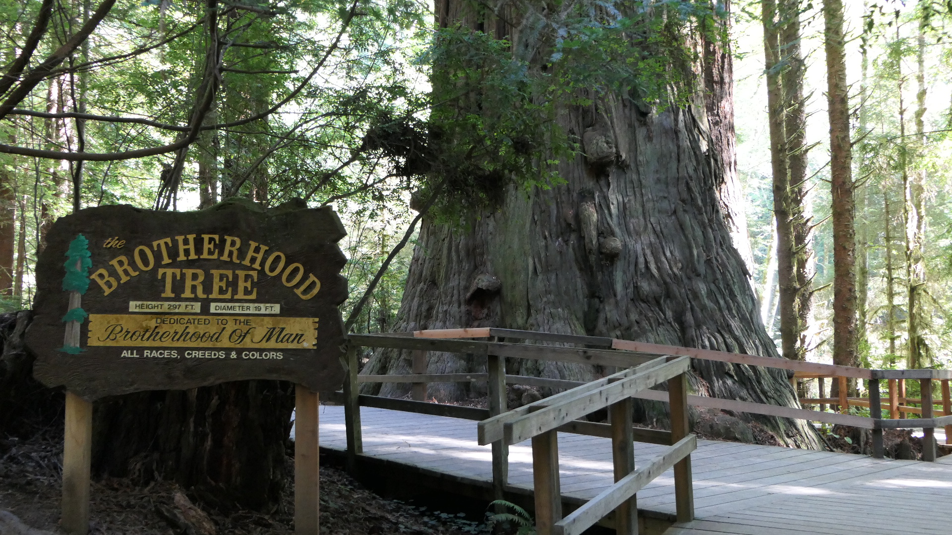 Brotherhood Tree는 높이 297 ft(95 m), 직경 19 ft(5.8 m)로 Trees of Mystery에서 가장 높은 나무였다. 2014년 벼락에 맞아 꼭대기에서 51 ft가 떨어져 나가 이제는 246 ft로 키가 줄어들었다.